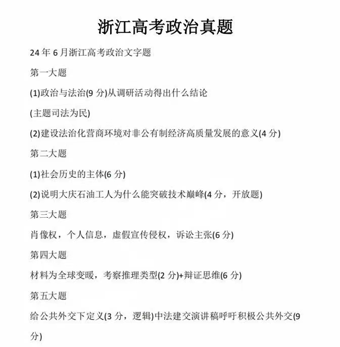 八、2024浙江高考政治答案及试卷