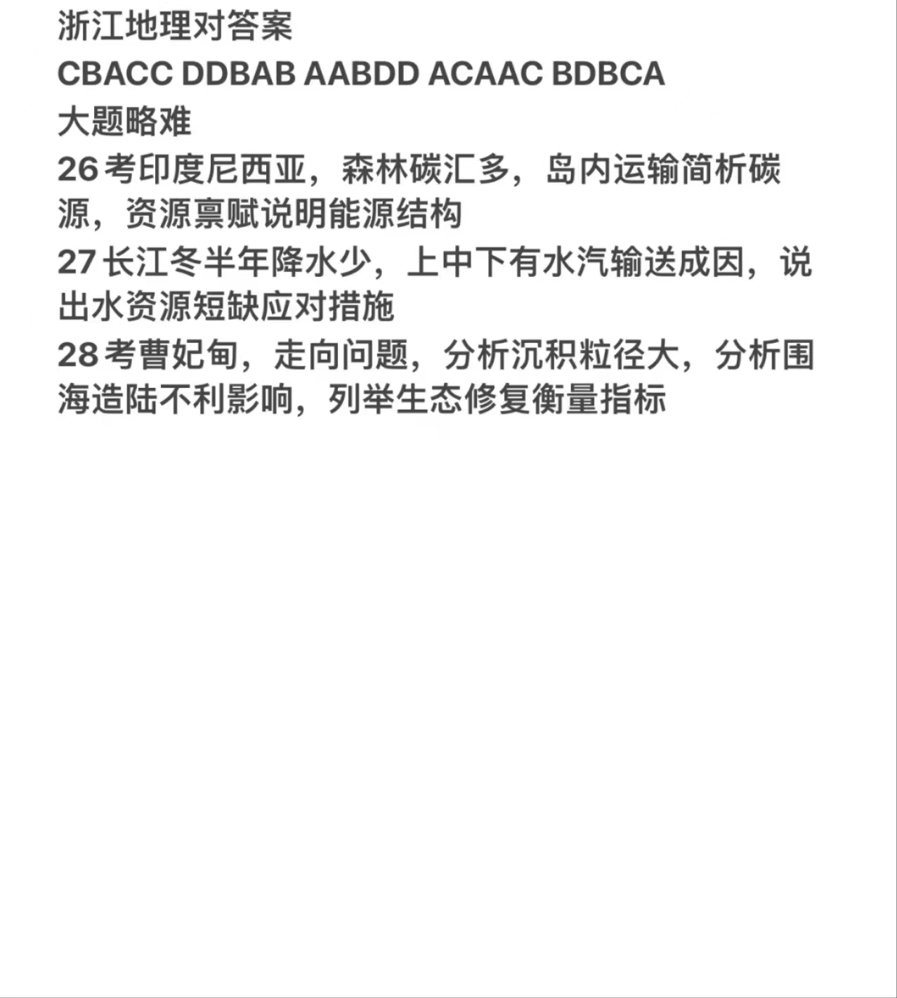 九、2024浙江高考地理答案及试卷