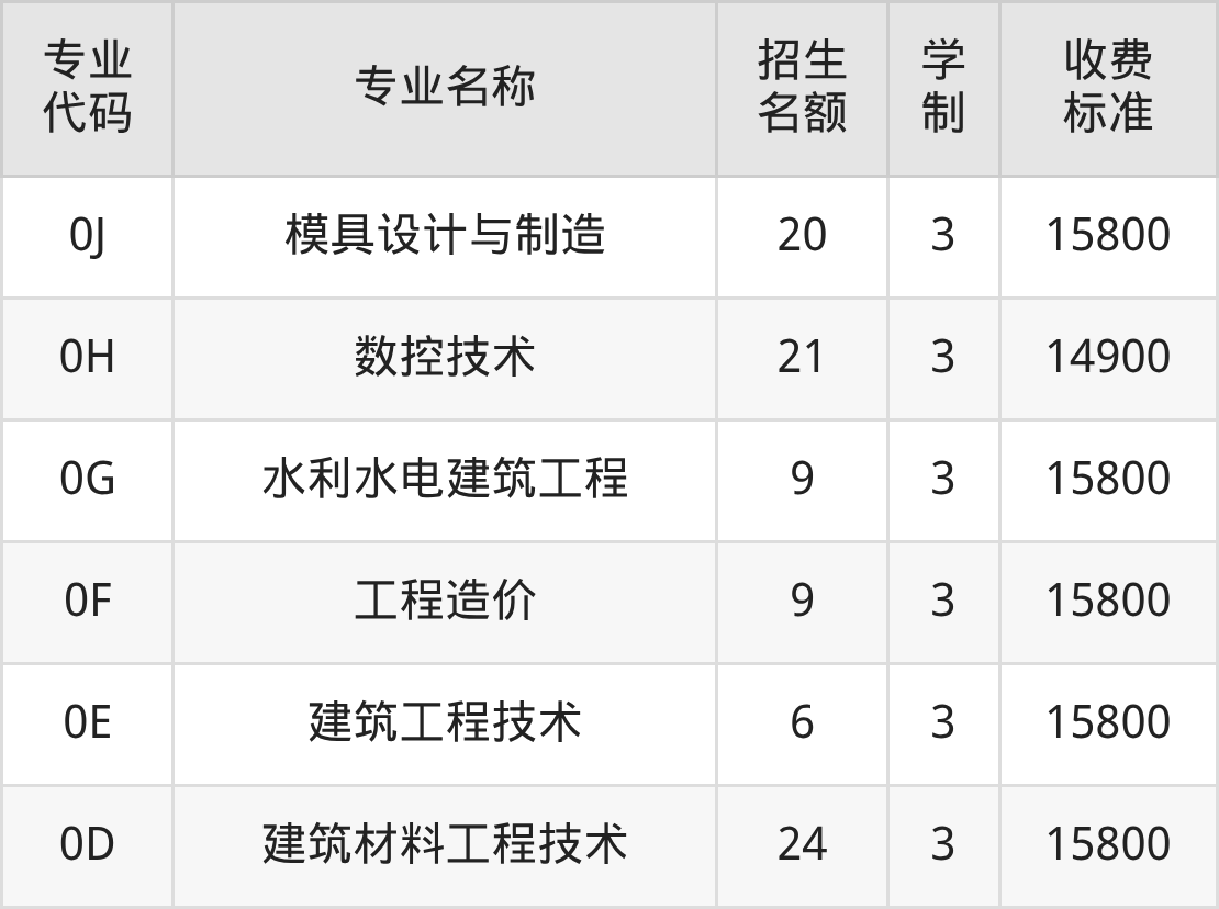 | BC | 建筑工程技术 | 10 | 3 | 15800 |