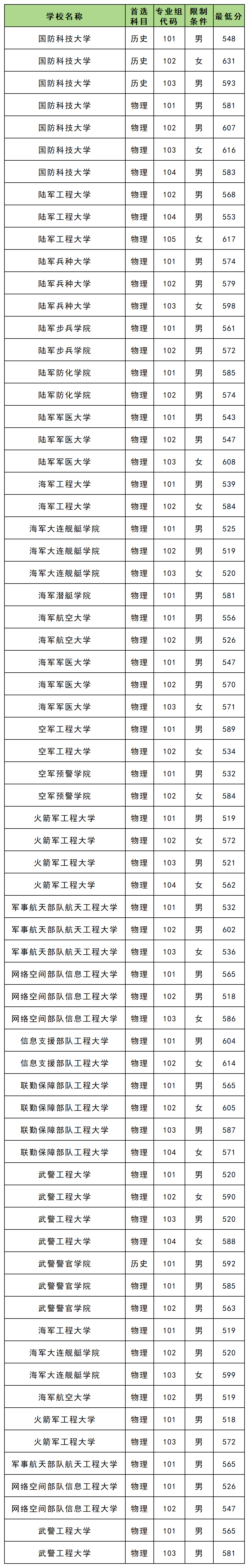 2025年四川省军校体检面试分数线为:物理类男生最低518分,女生最低520分;历史类男生最低548分,女生最低631分。