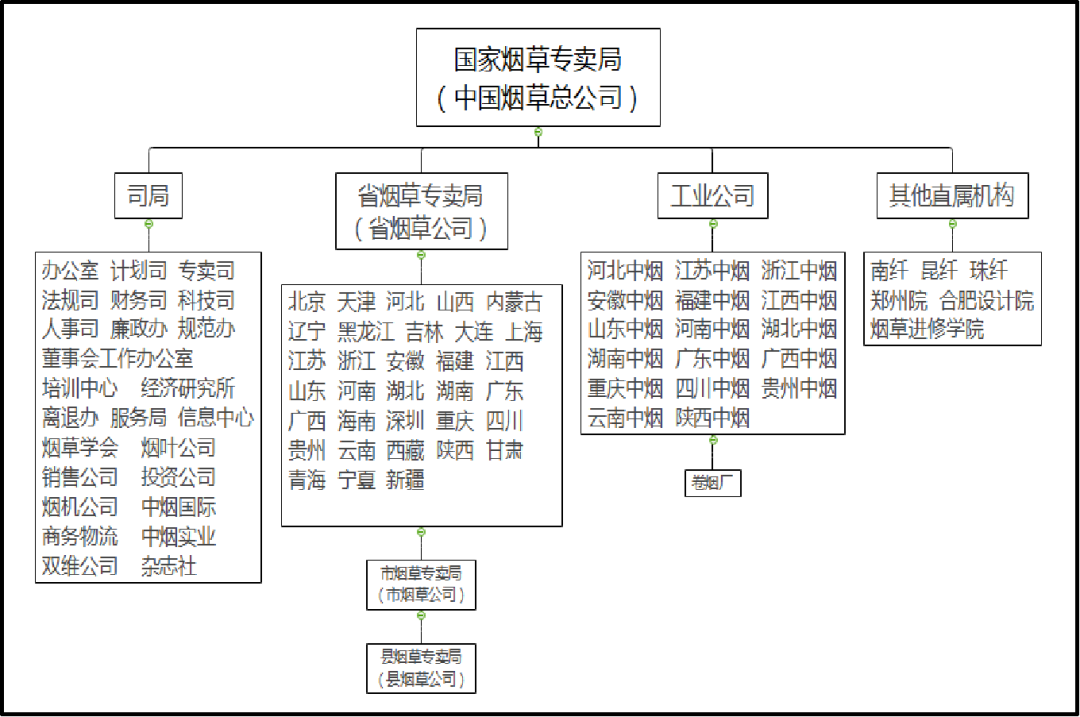 烟草局的全称叫做烟草专卖局。从下方的组织架构可以看到,国家烟草专卖局下设33个省烟草专卖局,这些专卖局就是毕业生们向往的单位,就业稳定,待遇也不错。