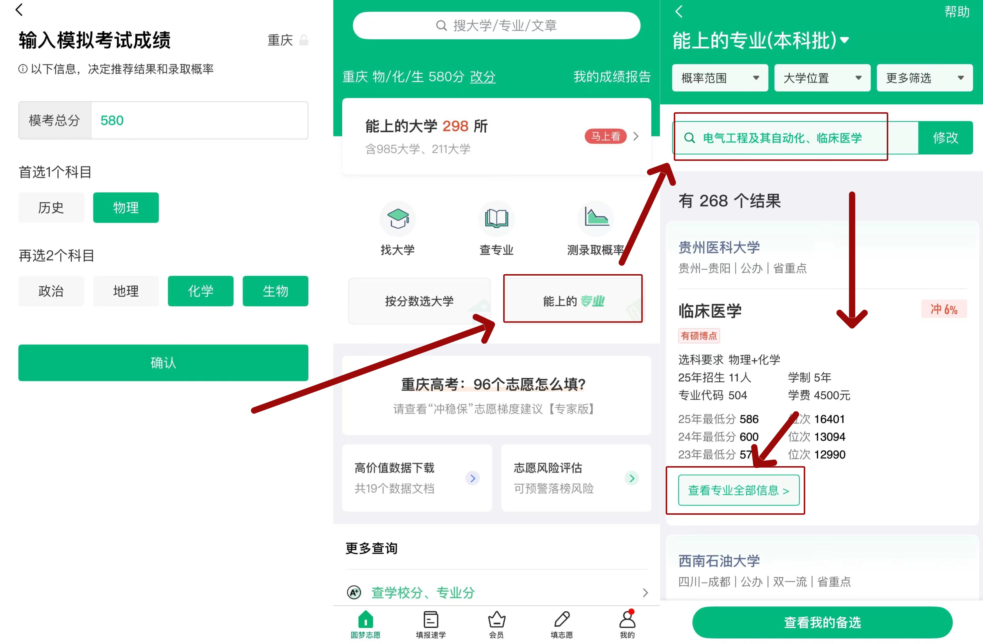 对于已确定专业方向的考生,推荐使用【能上的专业】功能。