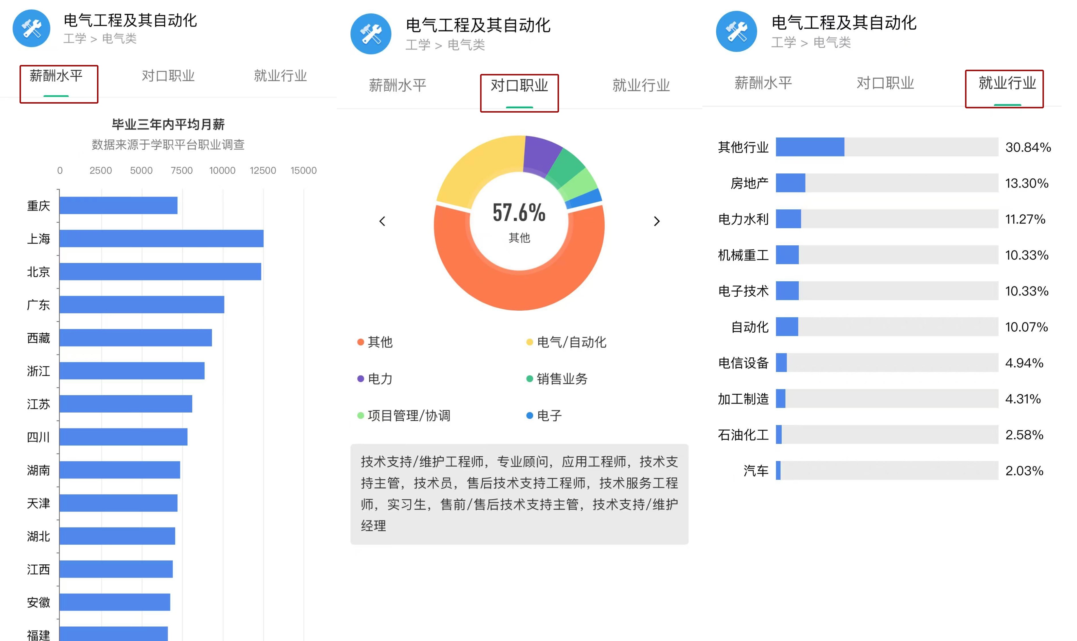 该板块提供薪酬水平、对口职业和就业行业数据,帮助考生评估职业发展。