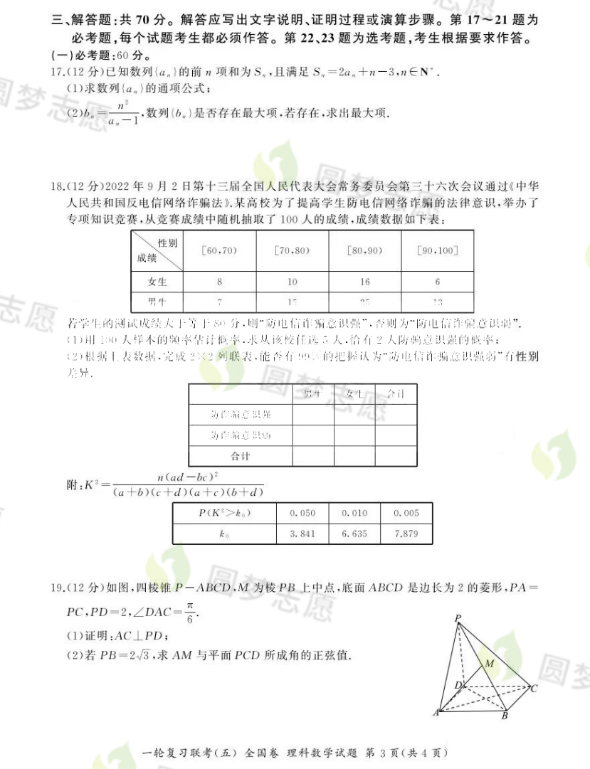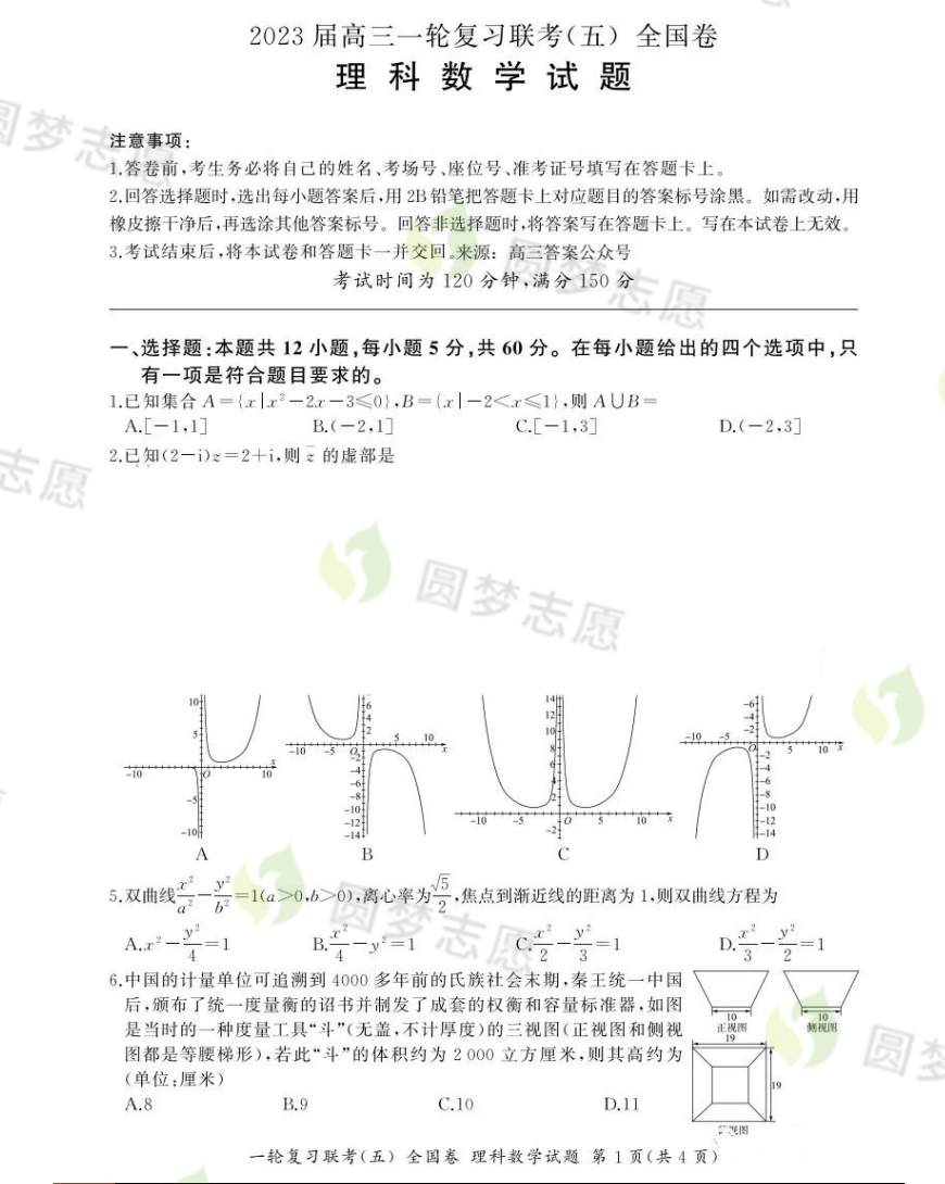 百师联盟2023高三联考数学试卷答案正在持续更新,本期为大家整理百师联盟2023届高三一轮复习联考(五)全国卷数学试题及答案,供大家参考。