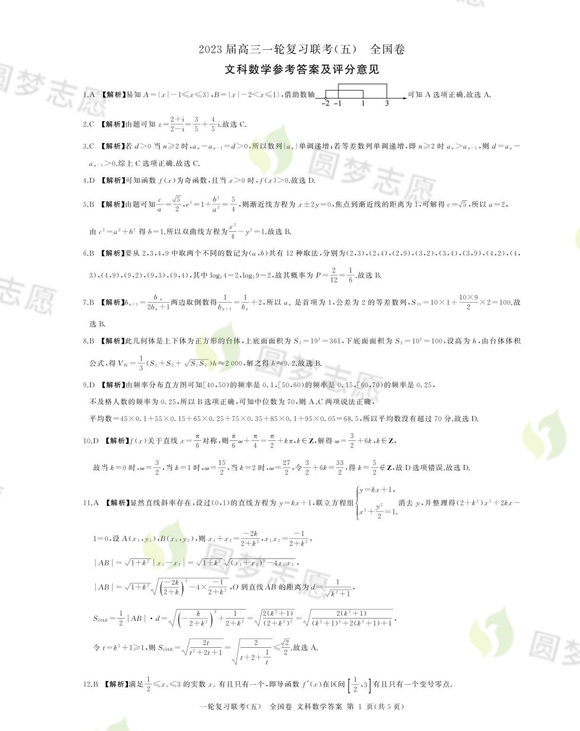 百师联盟一轮复习联考五答案全科:百师联盟2023高三联考五答案及试卷(1月全国卷)