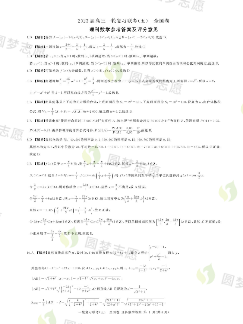 二、百师联盟2023高三联考五数学答案