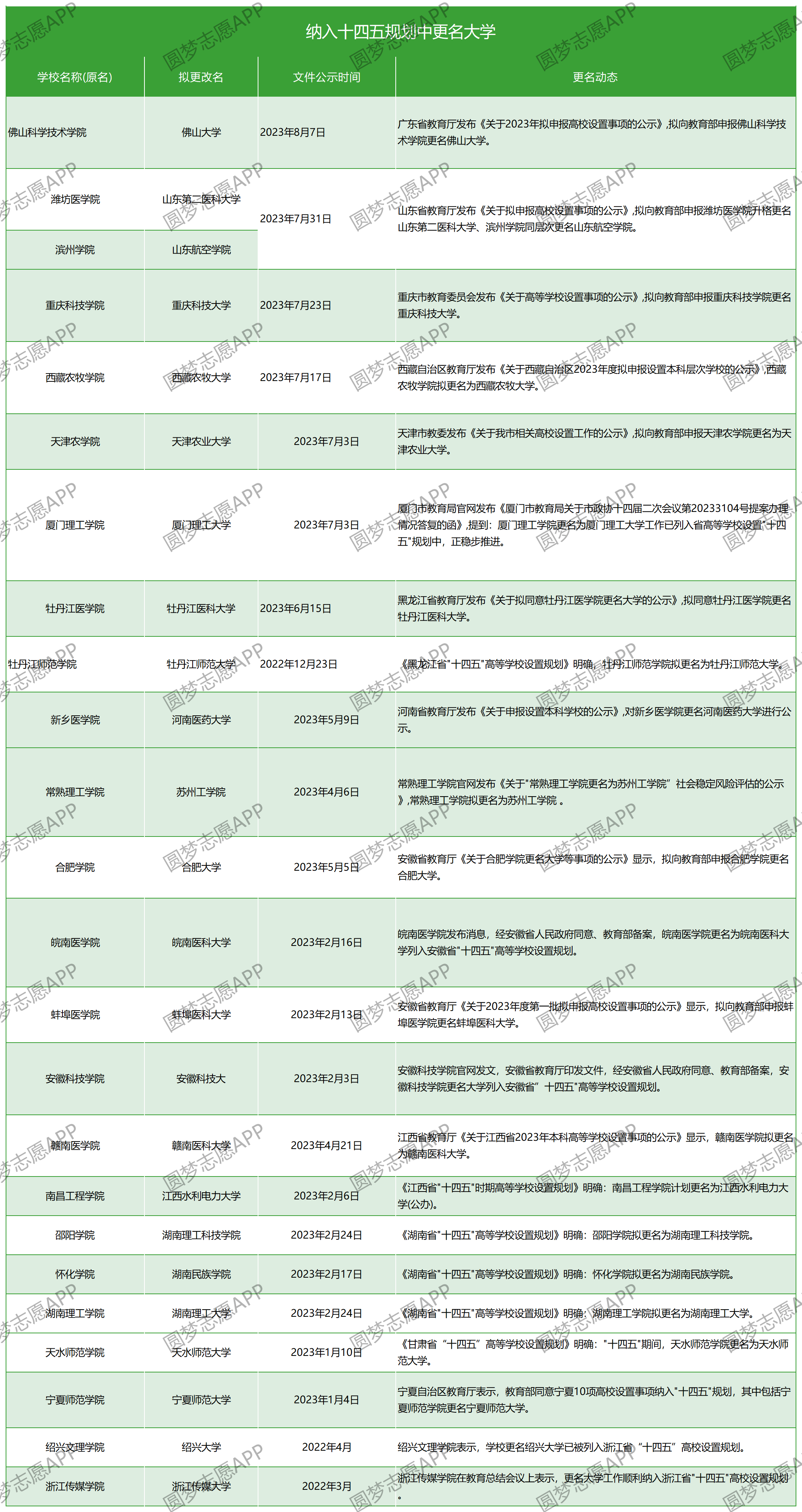 纳入“十四五”高等学校设置规划中,已有四所院校更名成功:分别是信阳师范学院、福建理工学院、上海体育学院、河北中医学院。