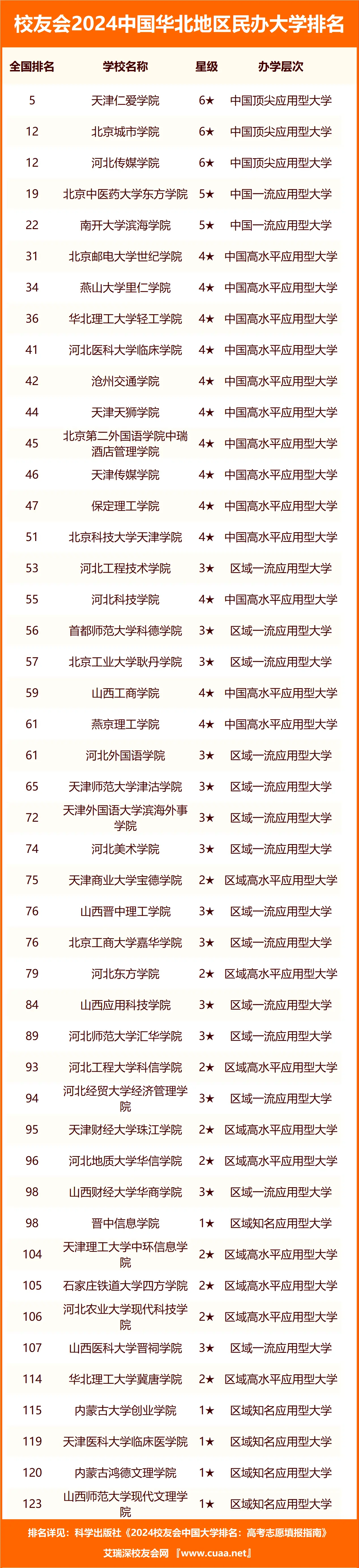 根据校友会2024年华北地区的民办本科大学排名表,可以得知国内排名前10的华北地区的民办本科大学分别是: