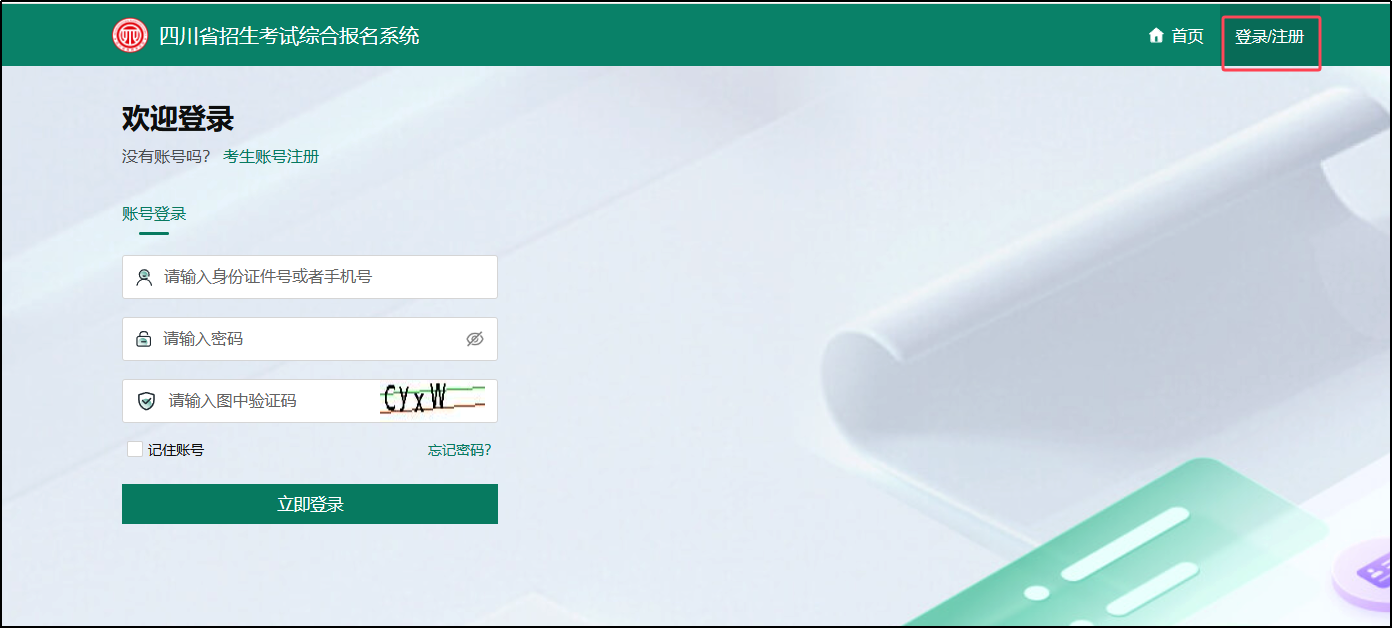输入官网地址进入首页,点击右上角“登录/注册”,输入高考报名证件号、密码及验证码,点击登录即可。考生需妥善保管账号密码,遇页面问题可刷新或更换浏览器。