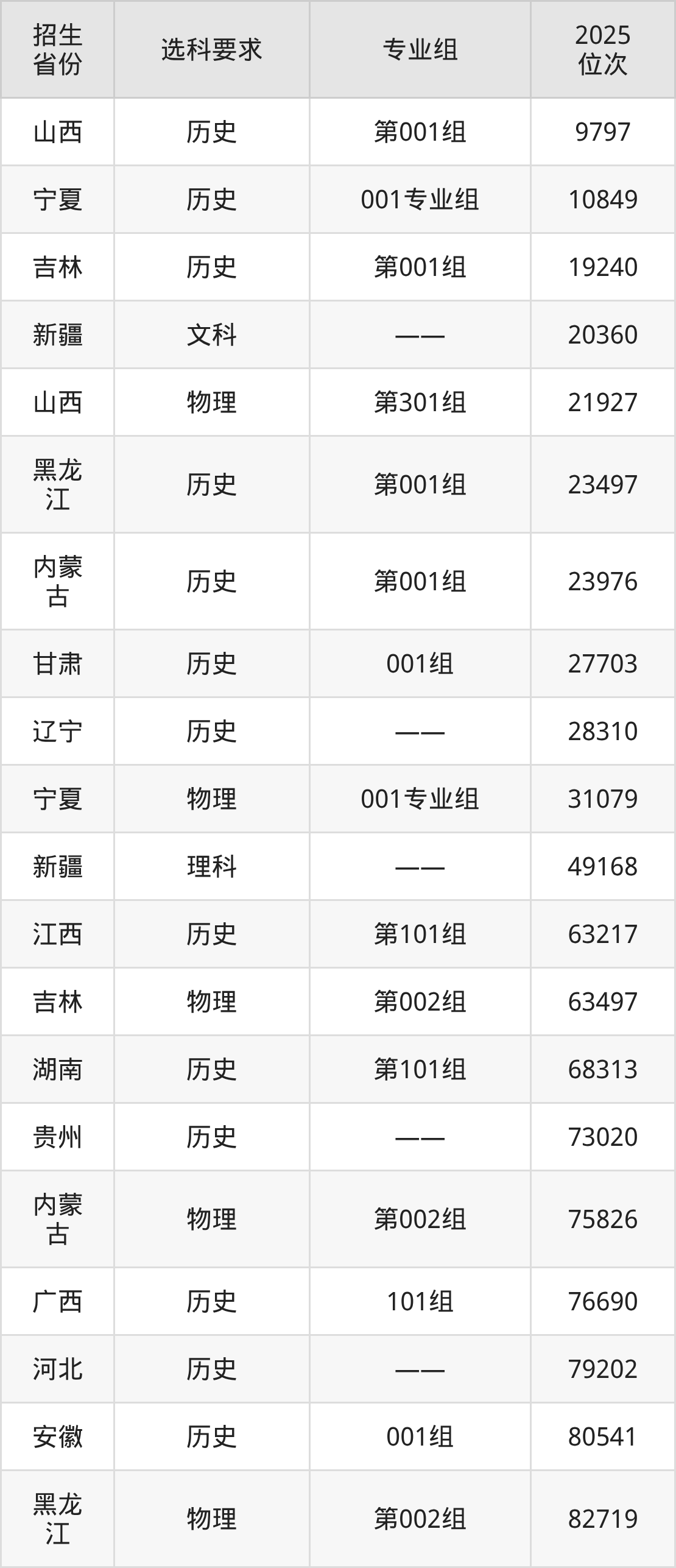 天津机电职业技术学院2025年在全国各省的位次差异较大,最高位次是9797位(山西历史类)、最低位次是345400位(山东)。各省具体位次请看下图: