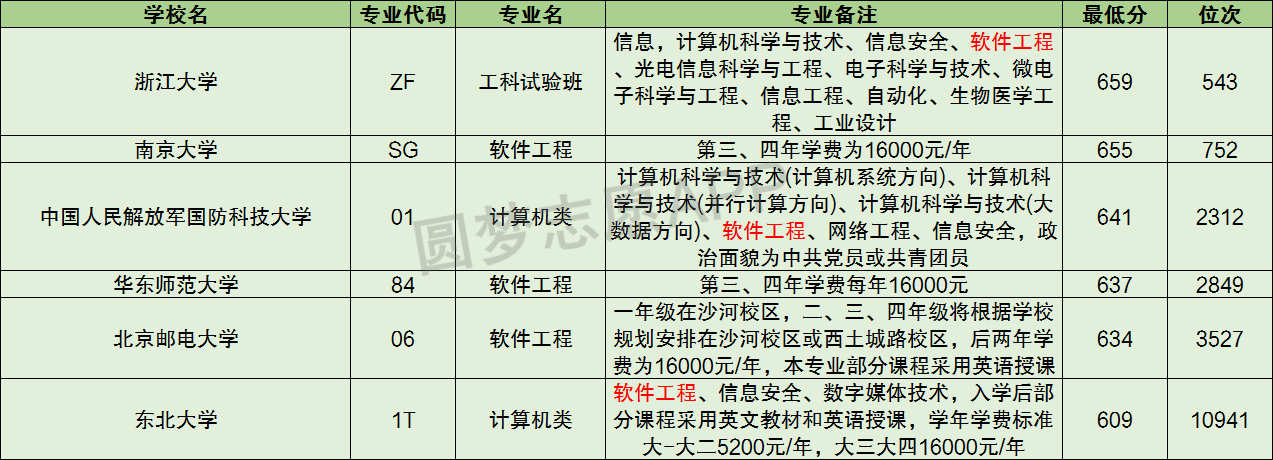 二、软件工程十大名校分数线排名