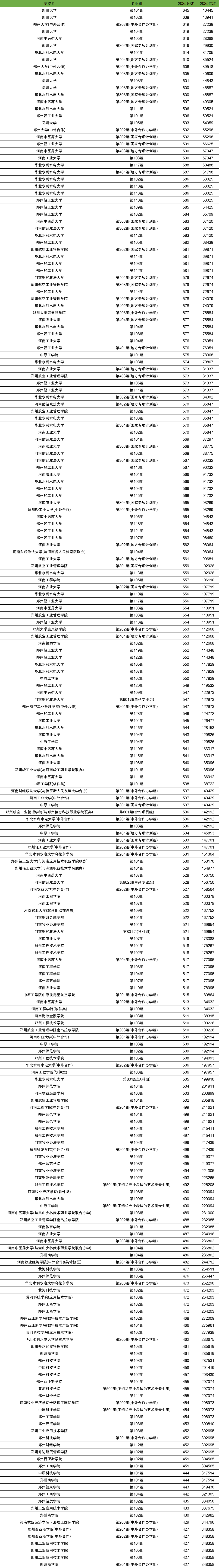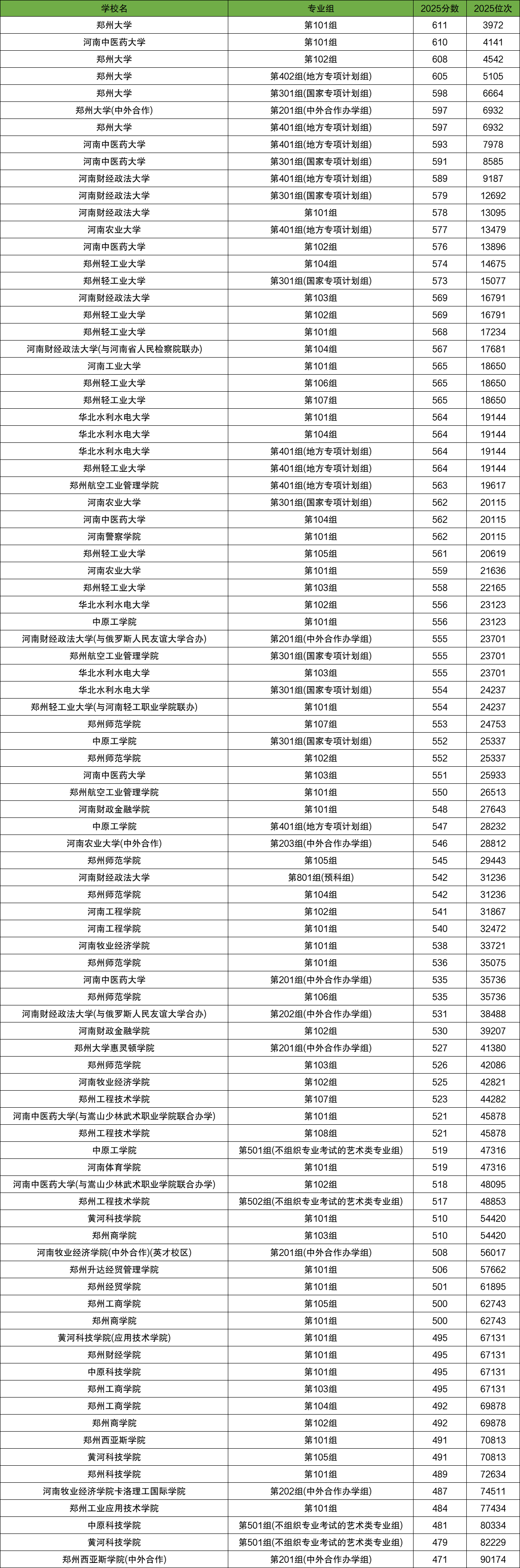 2025年郑州本科各大学专业组录取分数线(历史类):