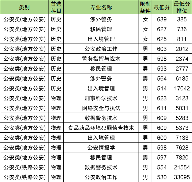 仅整理所有警校提前批录取分数线汇总。