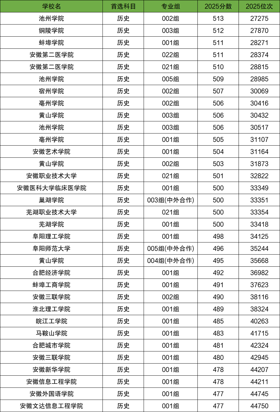 三、安徽二本大学录取分数线(历史类)
