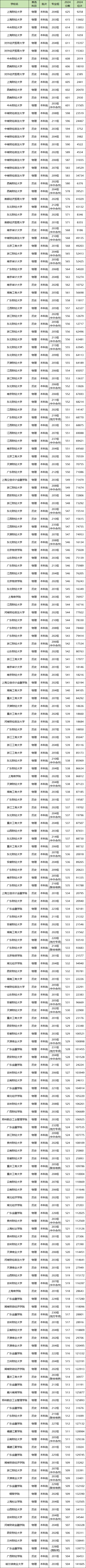 历史类:最低428分、物理类:最低442分