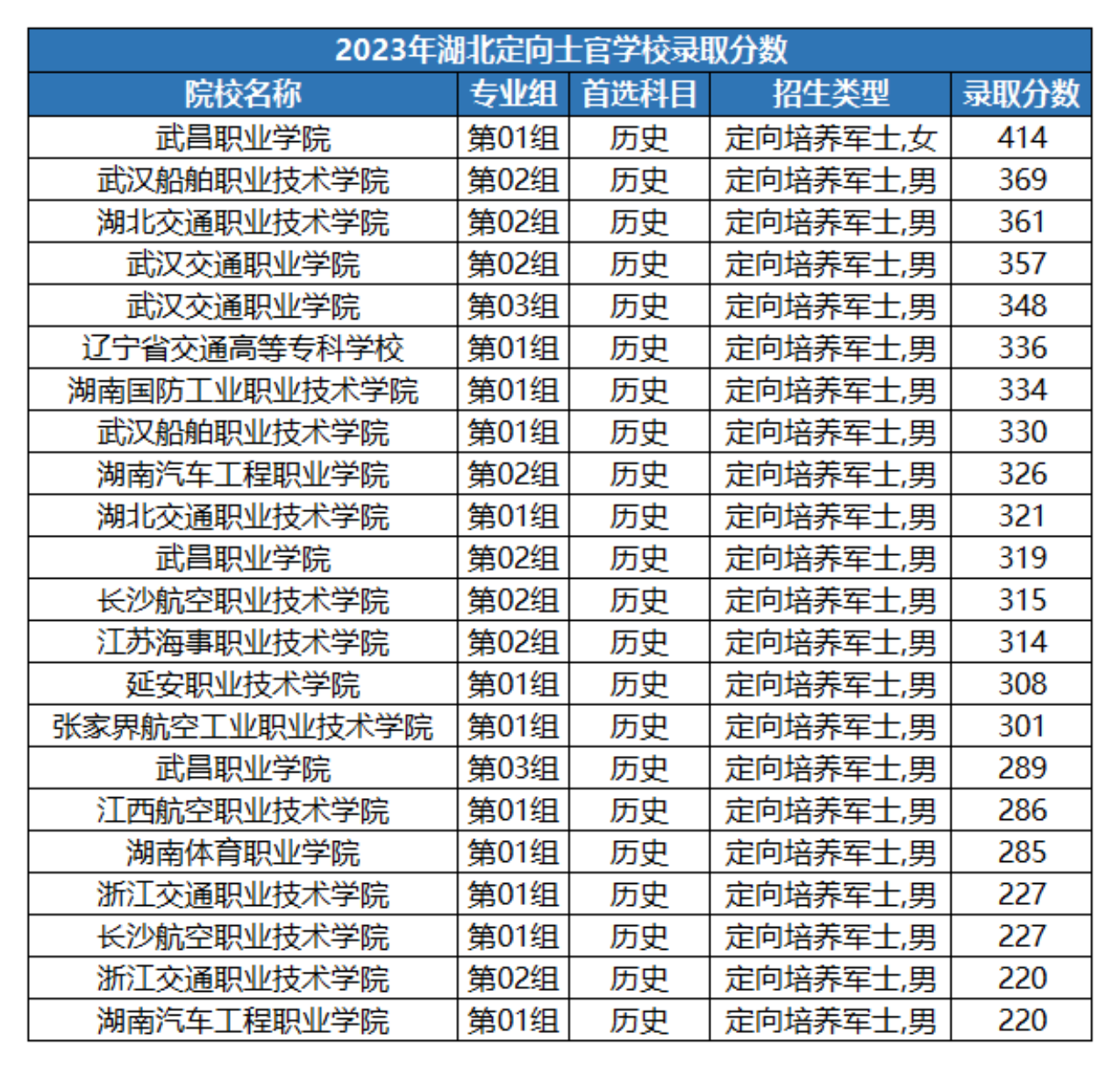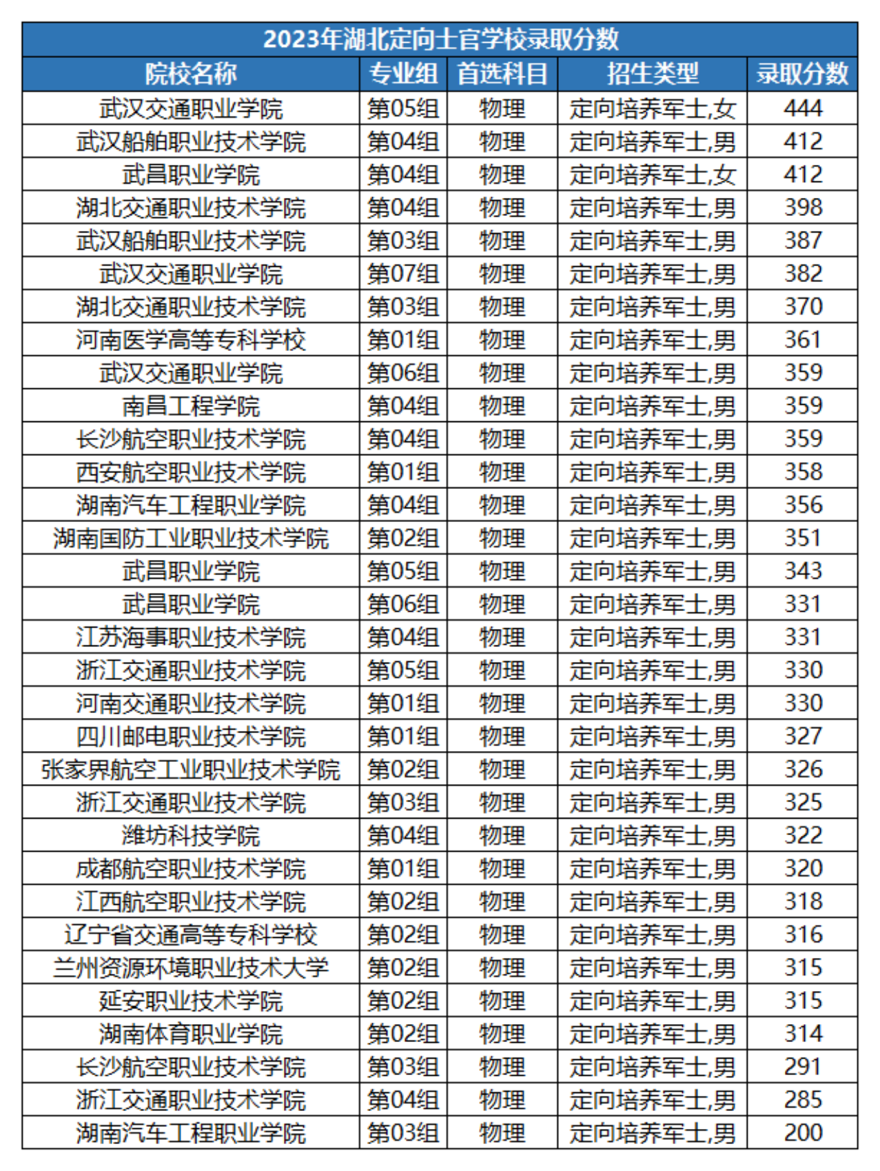下文为各位考生和家长整理全国直招军士院校2023年在湖北首选物理科目组招录分数线(上下滑动可以查看图片):