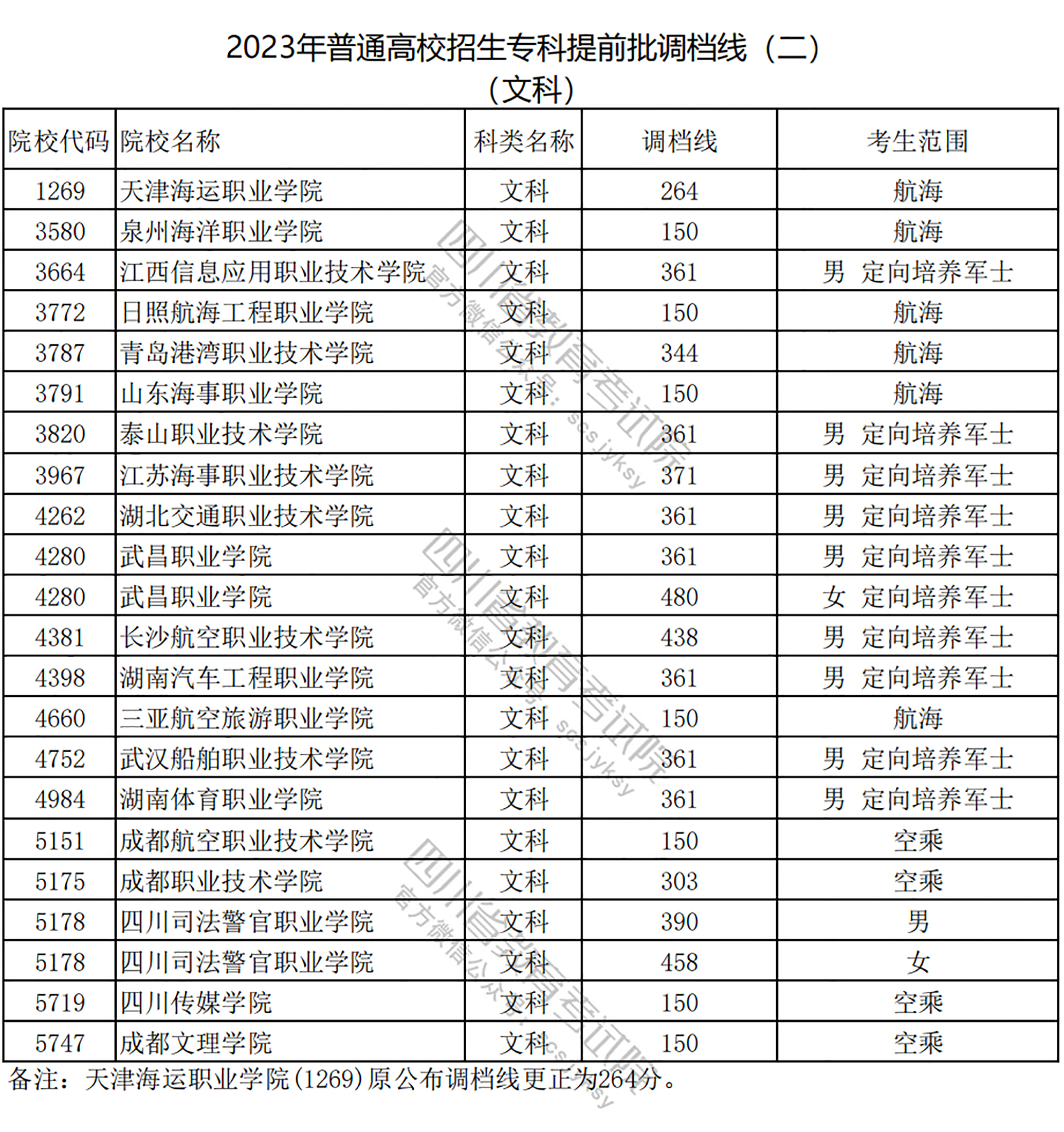 2023年定向培养军士院校在四川文科专科提前批投档分数线如下: