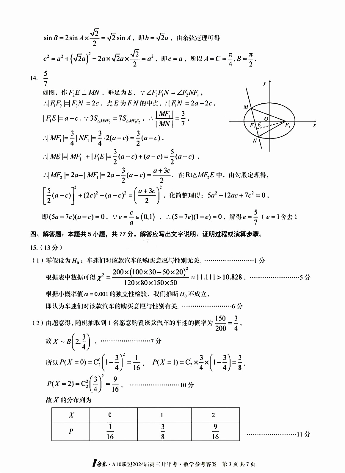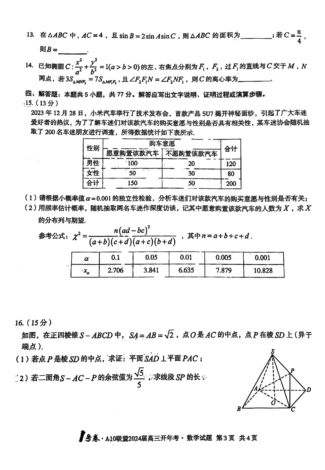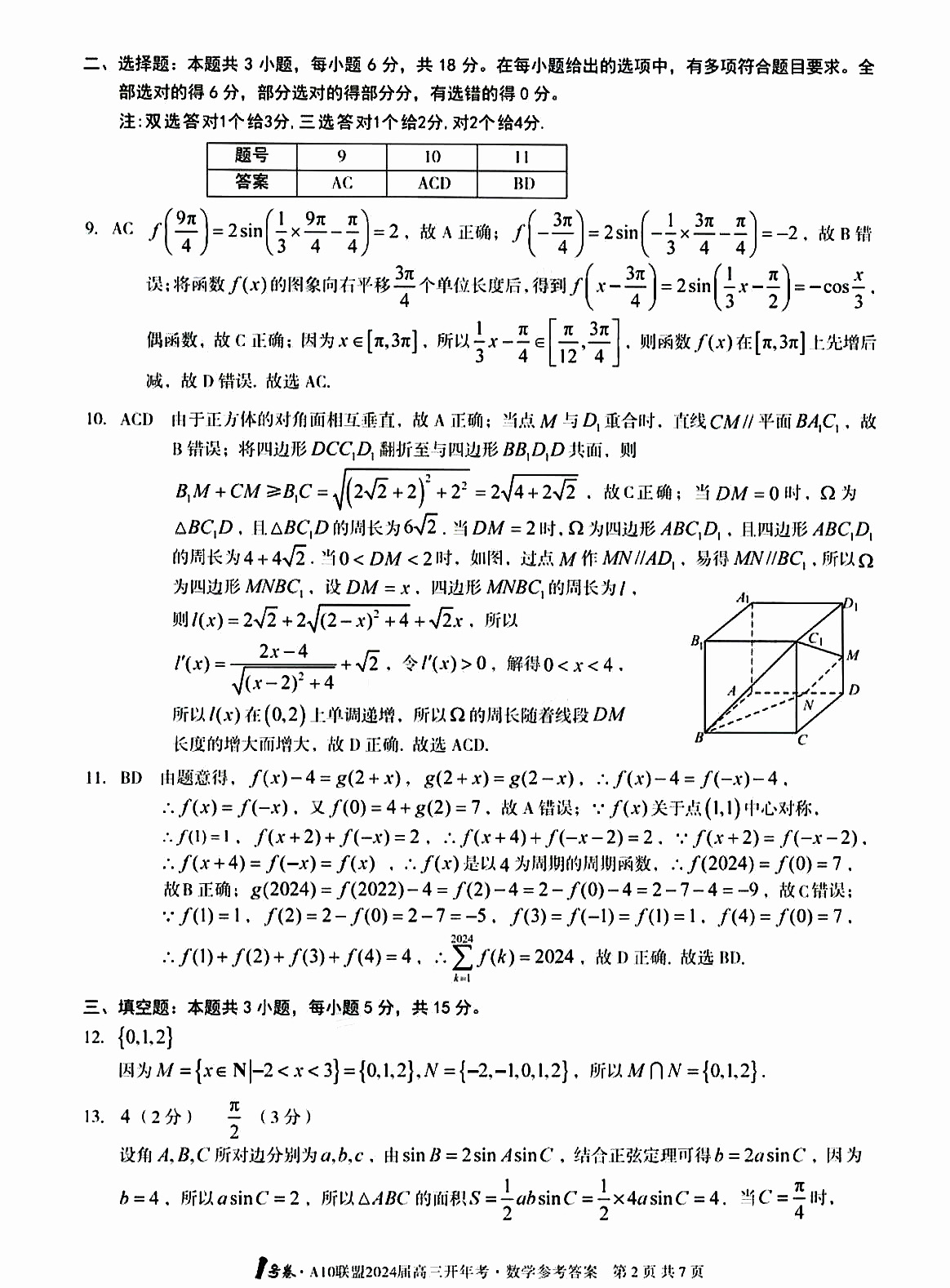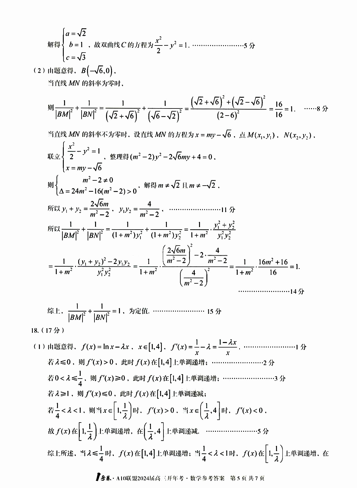 2.2024安徽a10联盟高三开年考数学试卷及答案