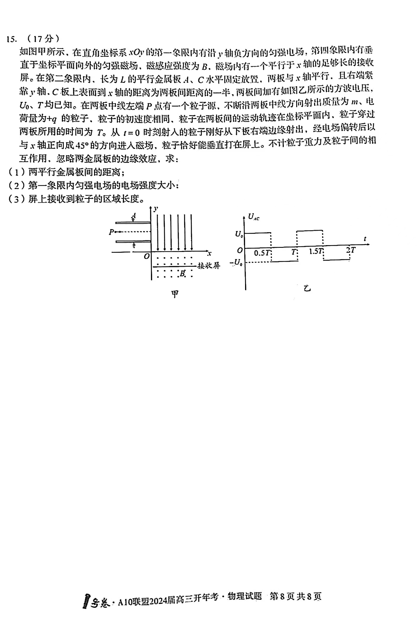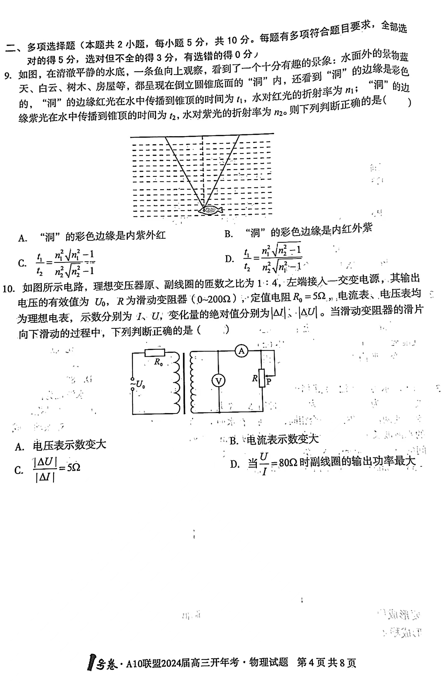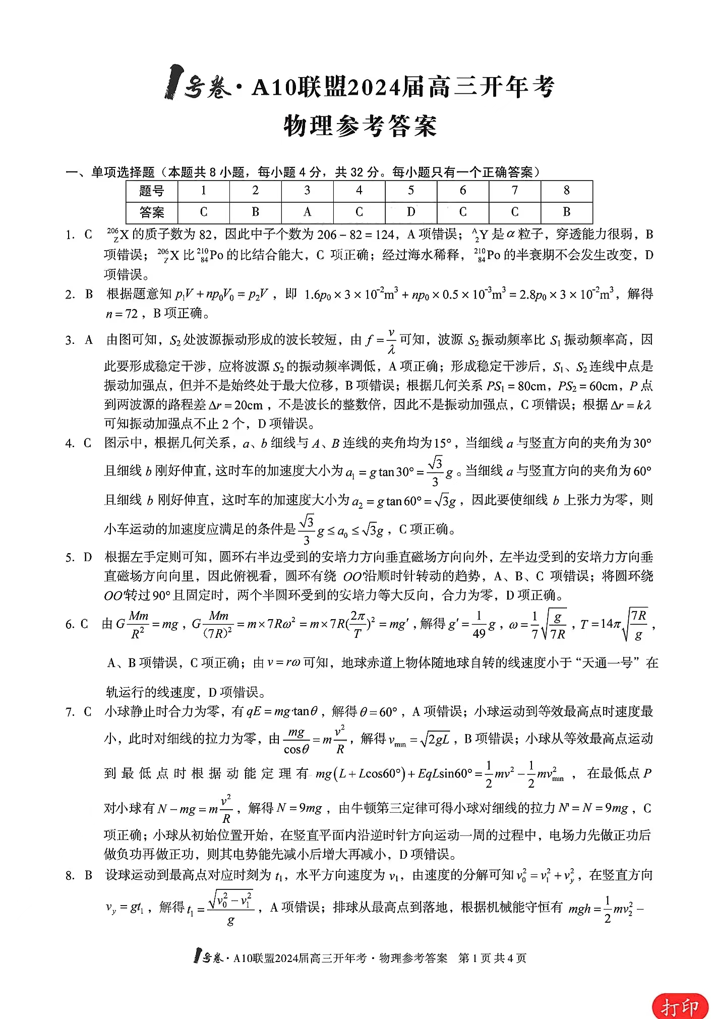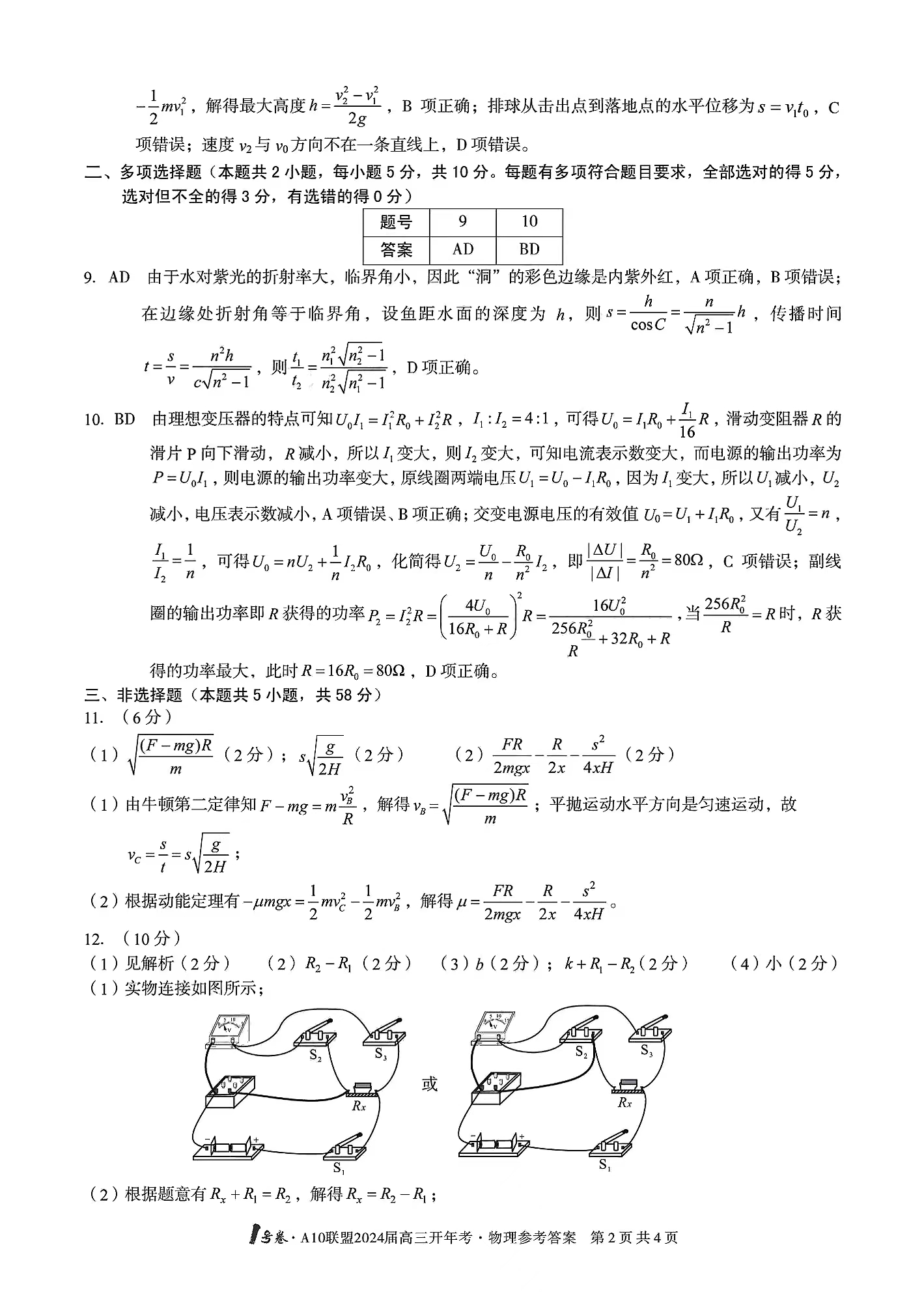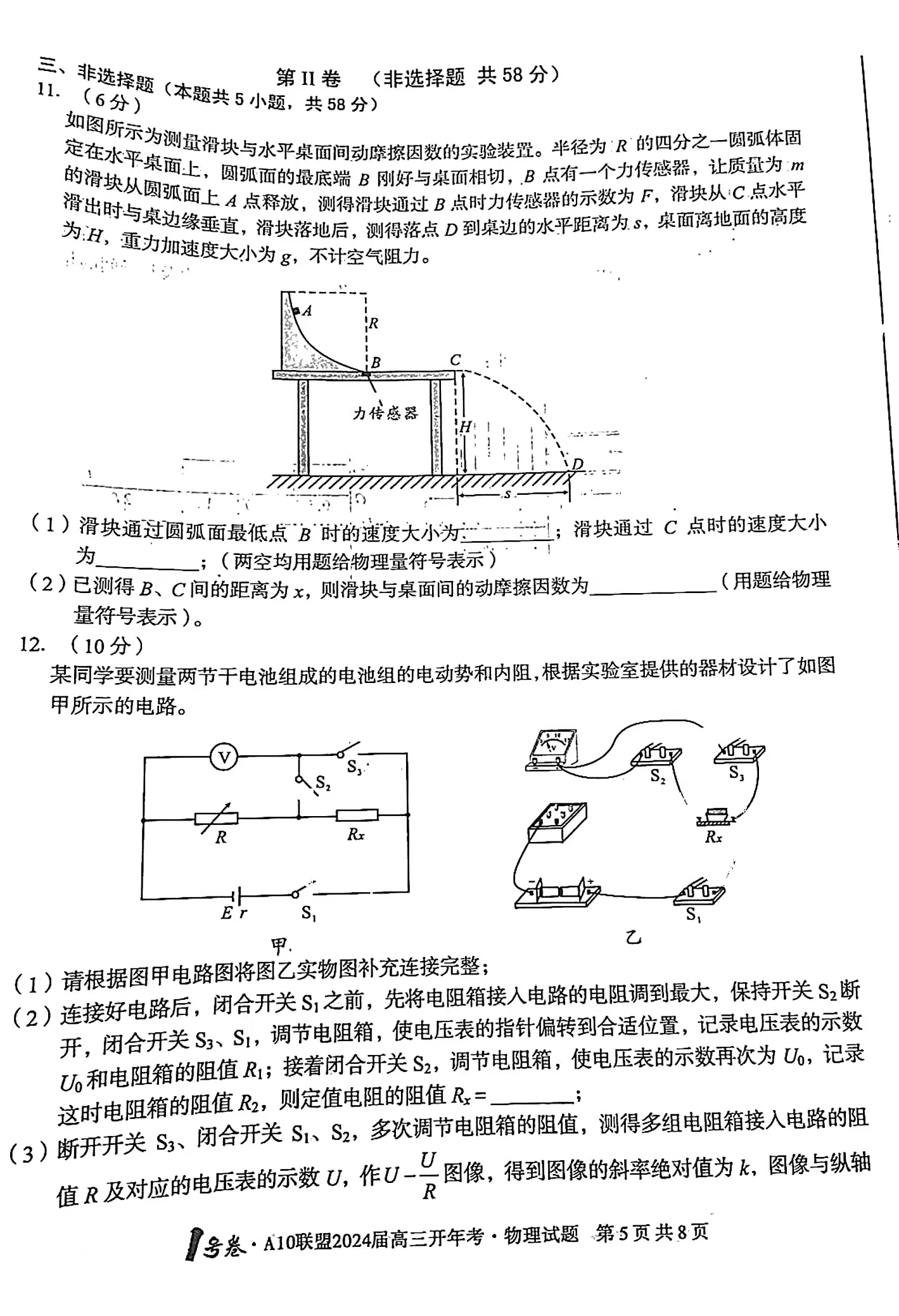 4.2024安徽a10联盟高三开年考物理试卷及答案
