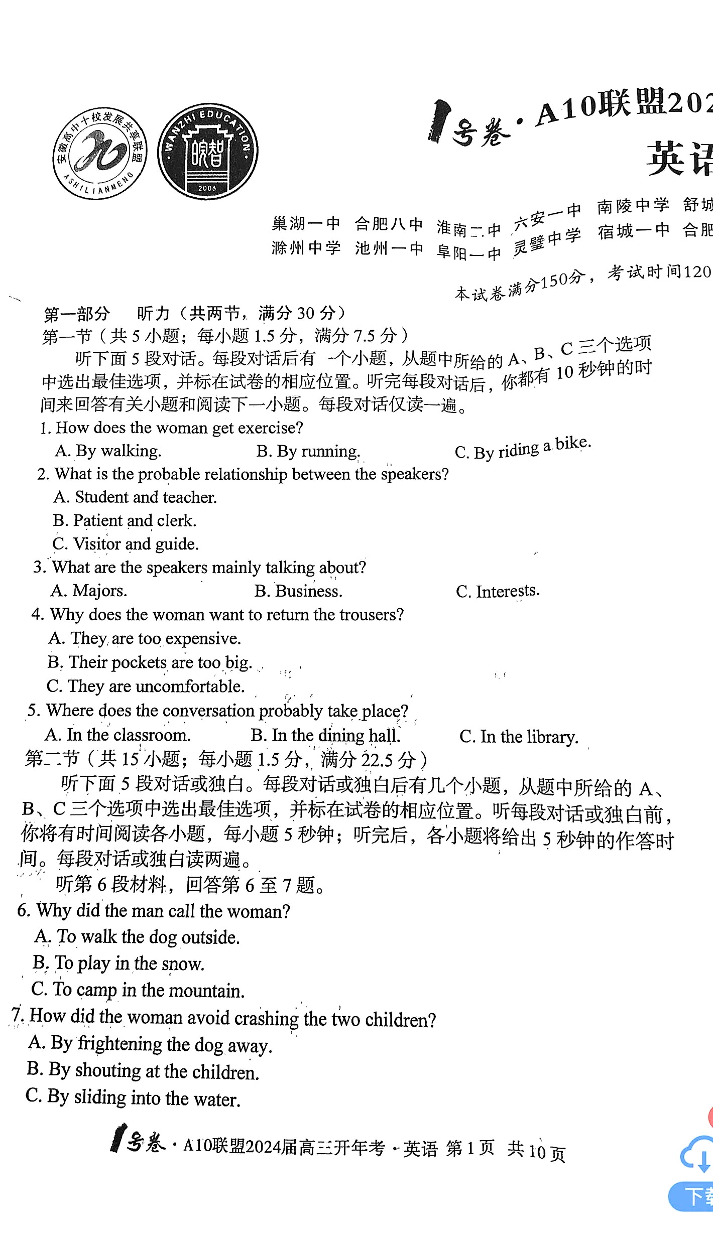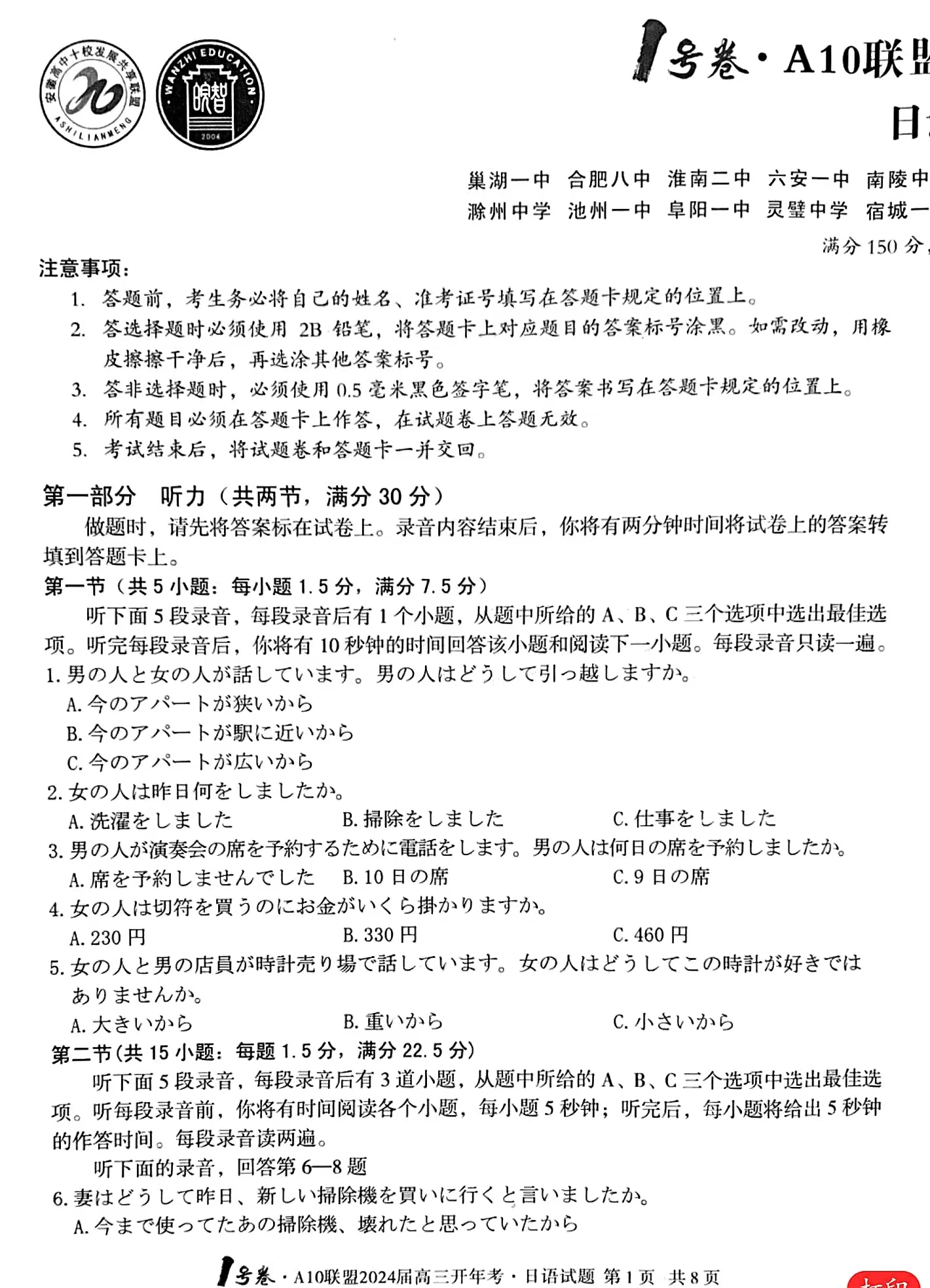 2024届安徽A10开年考将于2月20日开考,一共考两天,相信同学们应该很关注本次考试的试题及答案,本期将整理2024安徽a10联盟高三开年考各科试卷及答案解析,供查阅。
