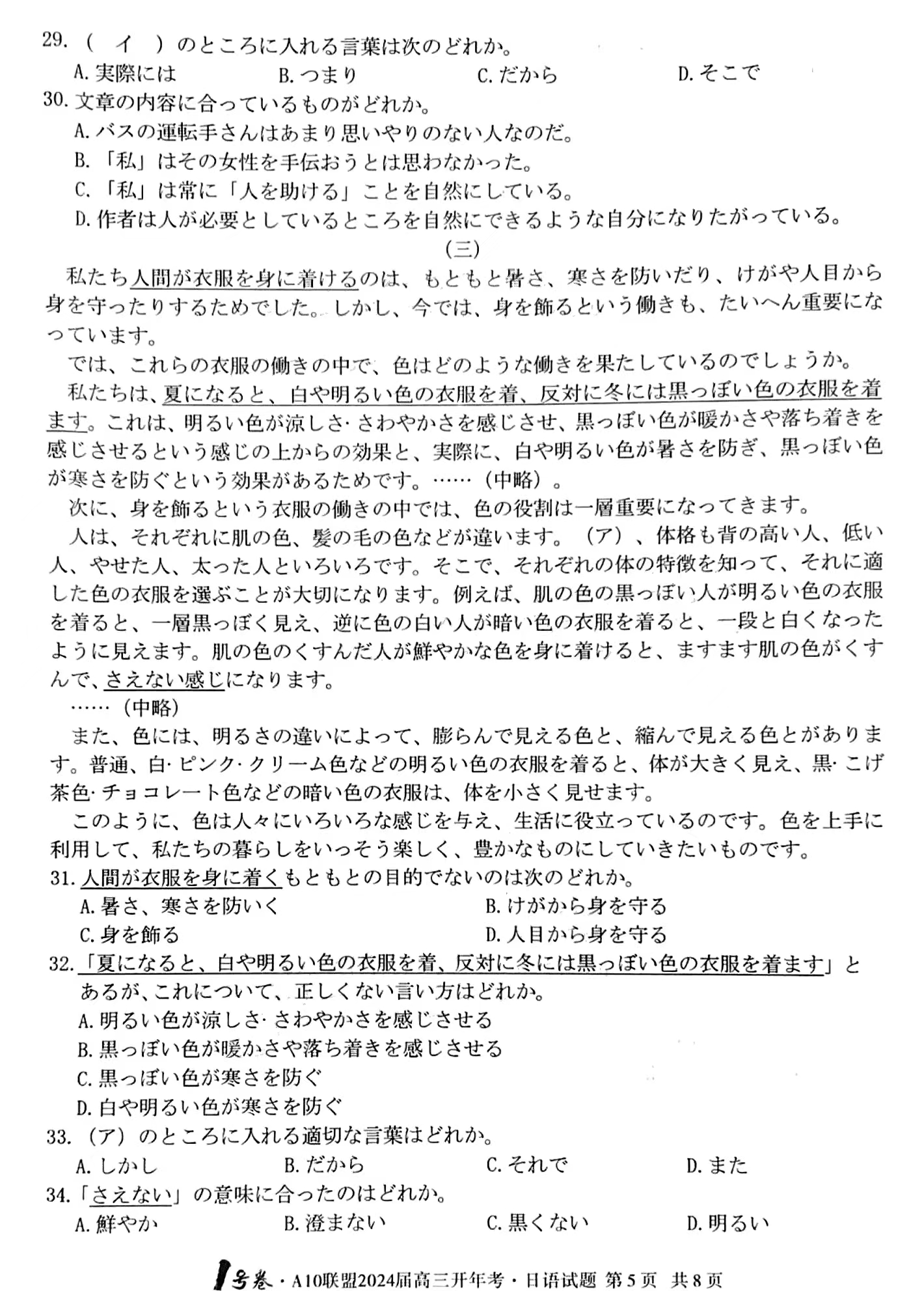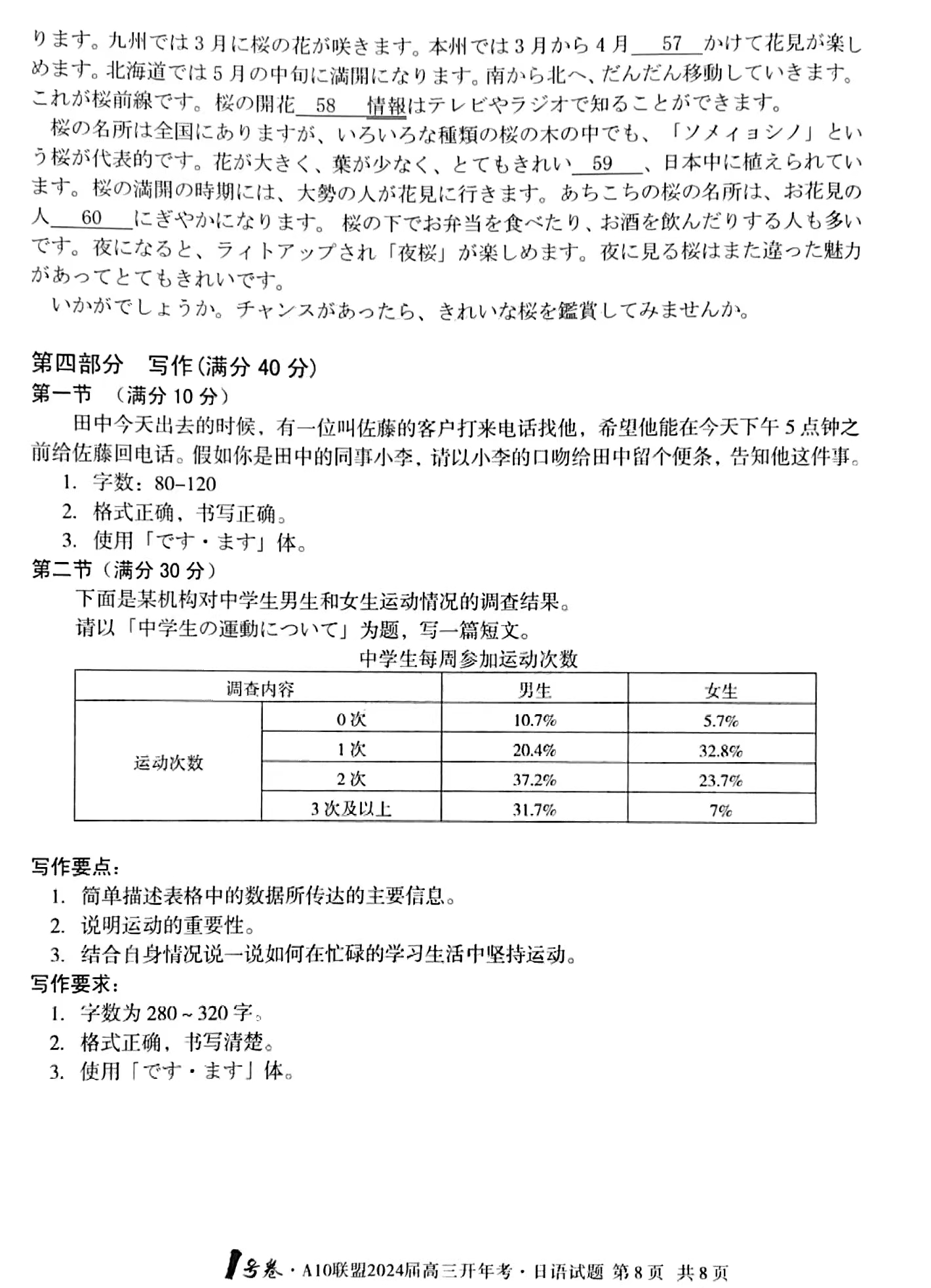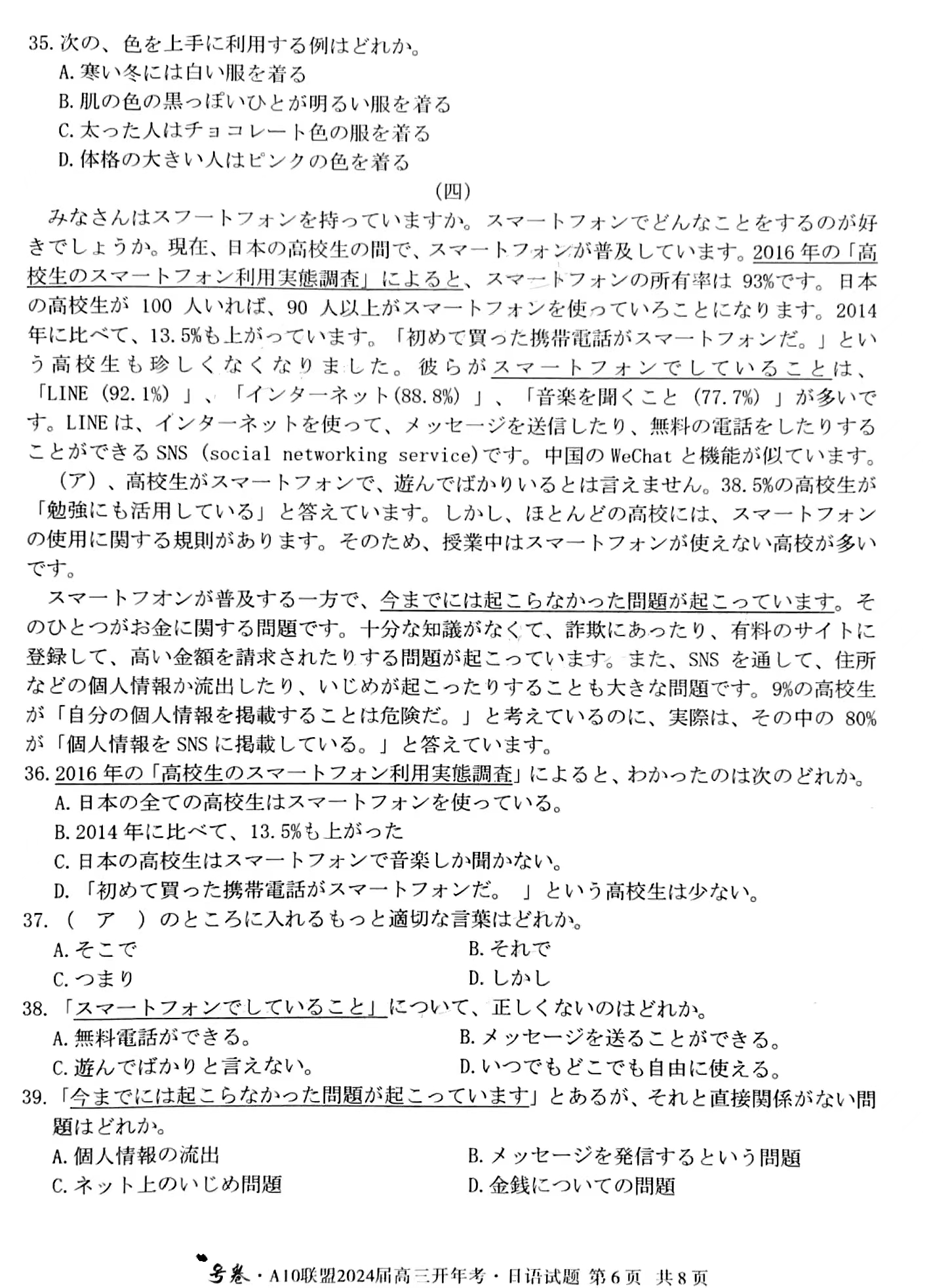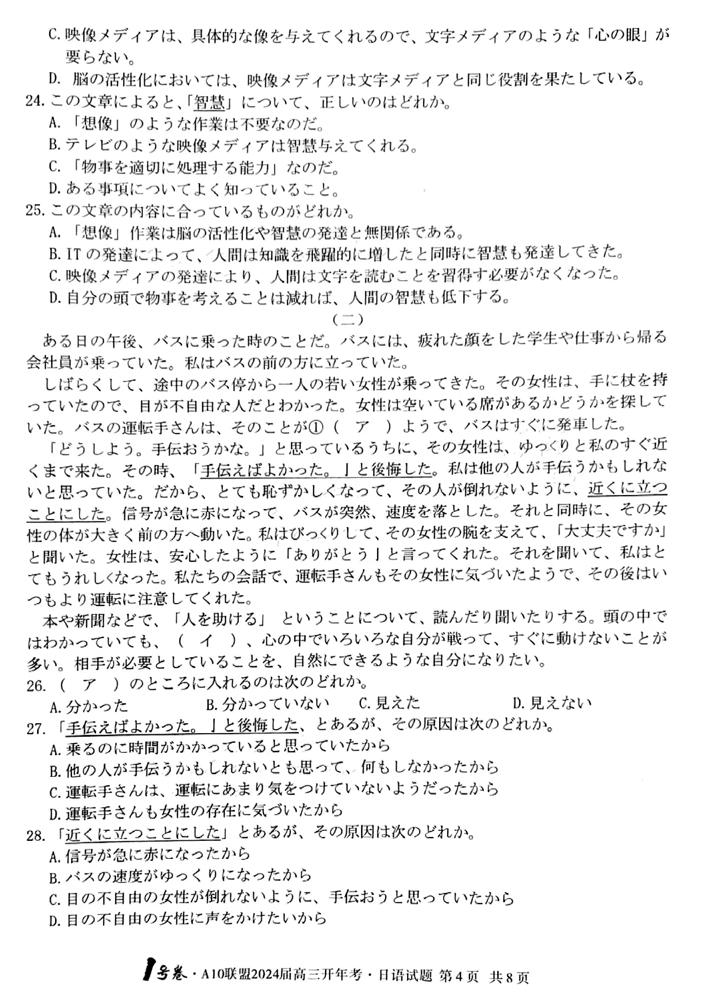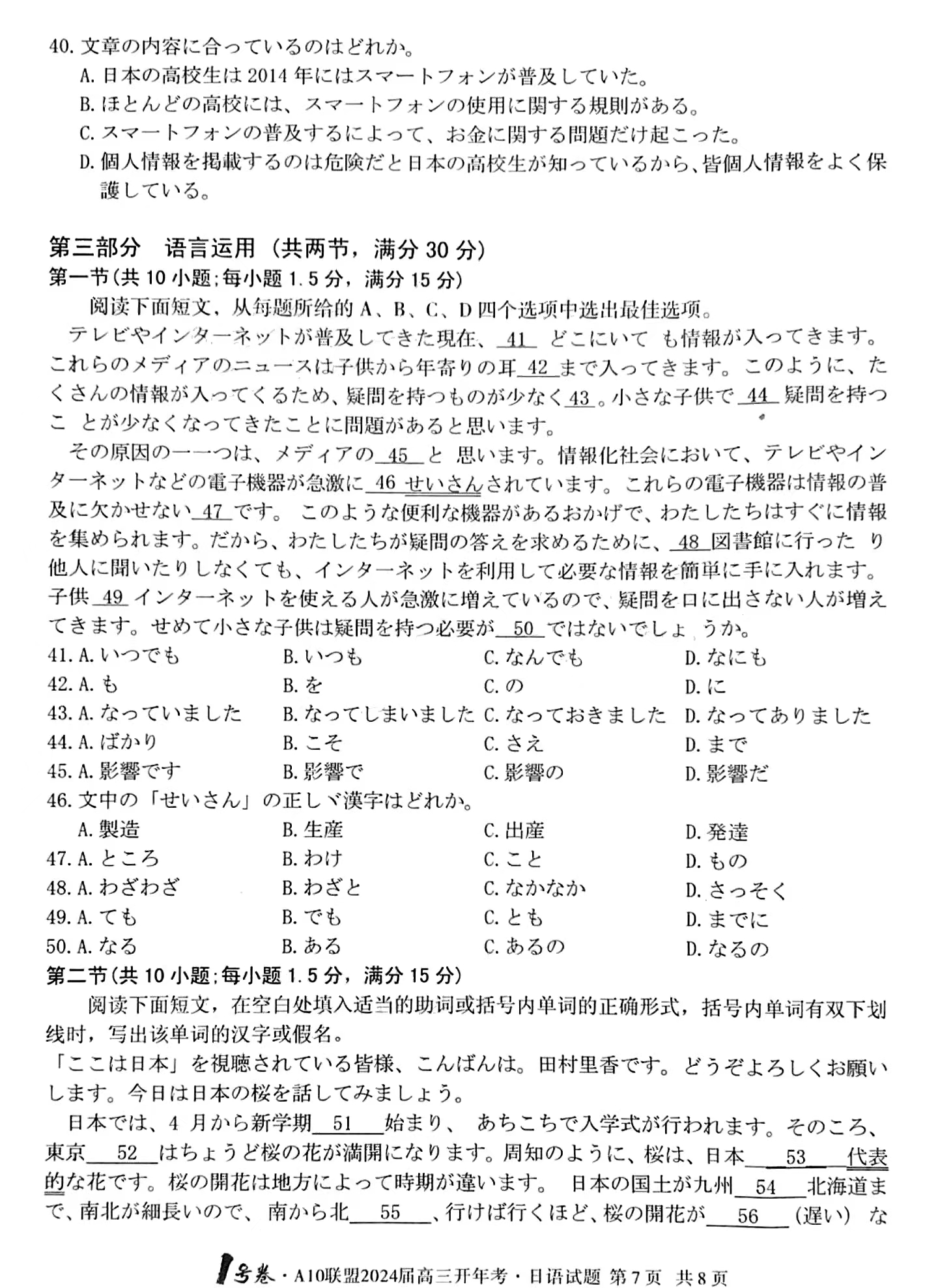 3.2024安徽a10联盟高三开年考外语试卷及答案