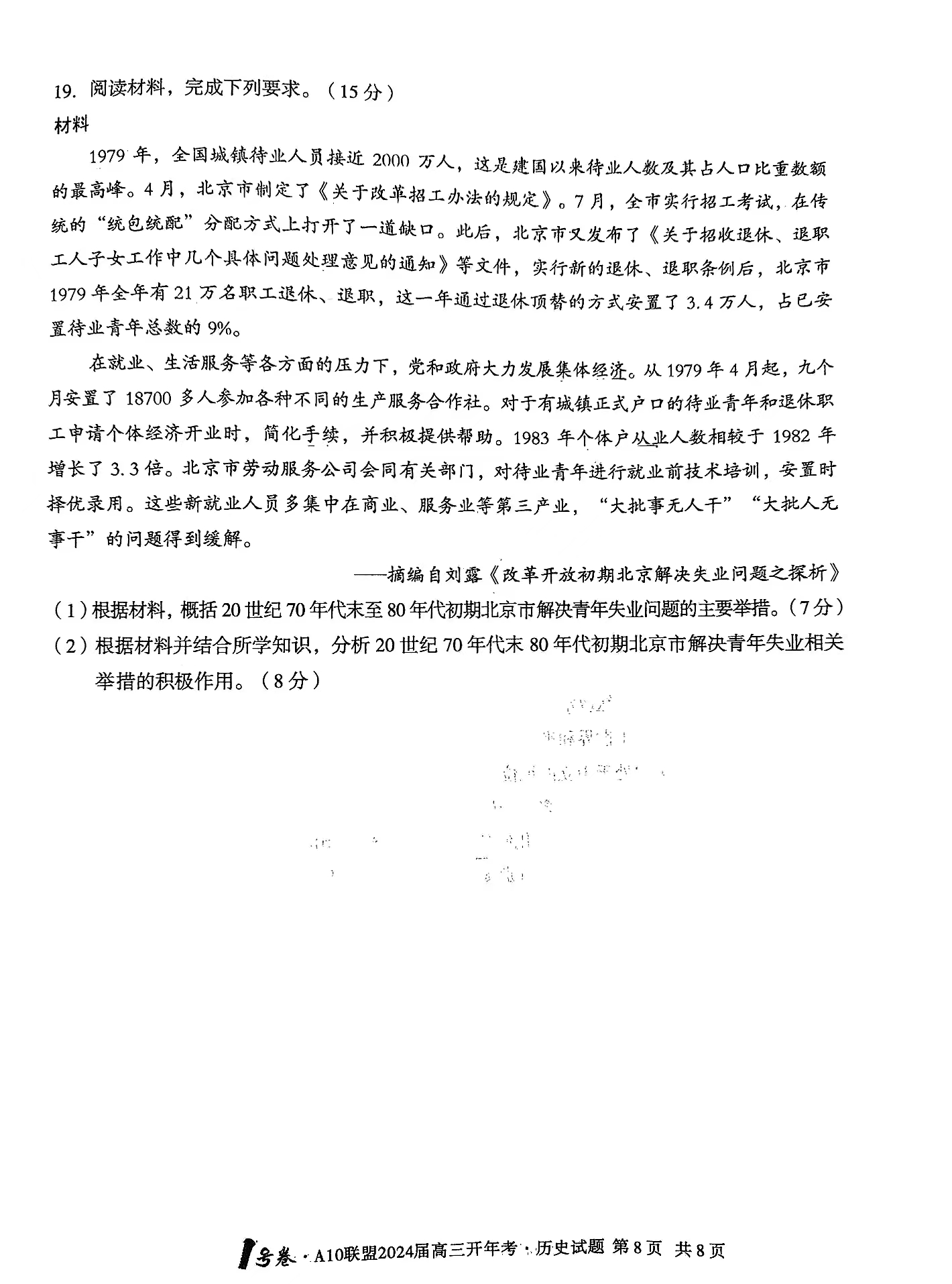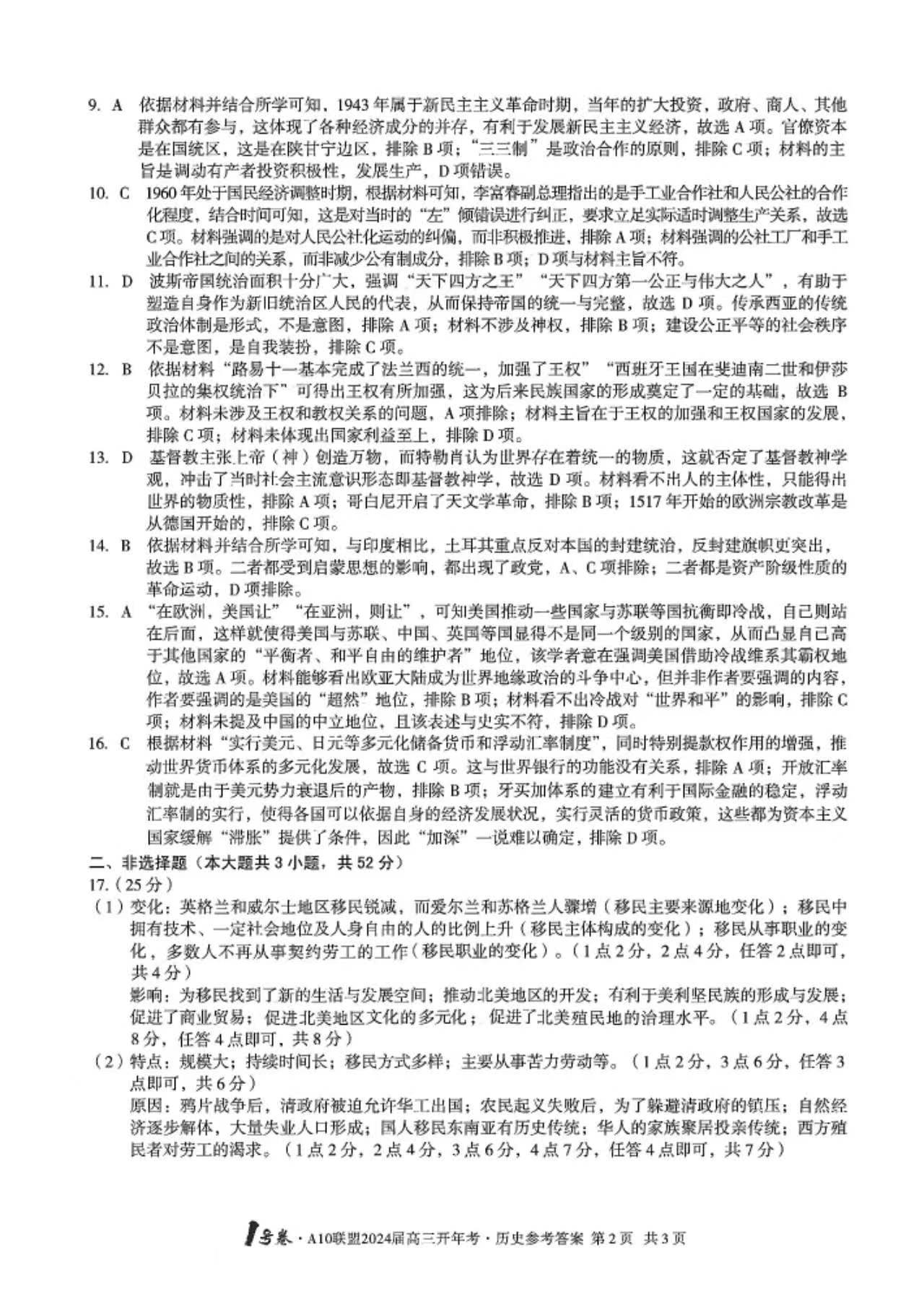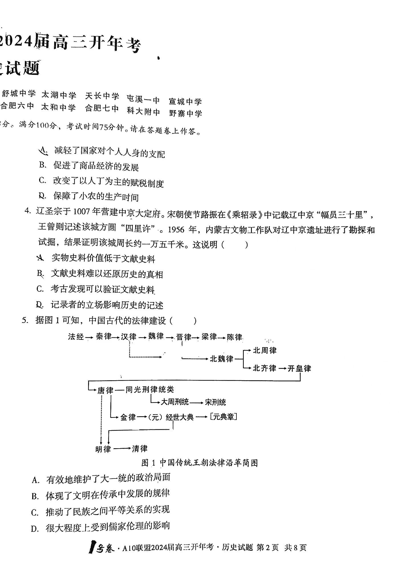5.2024安徽a10联盟高三开年考历史试卷及答案