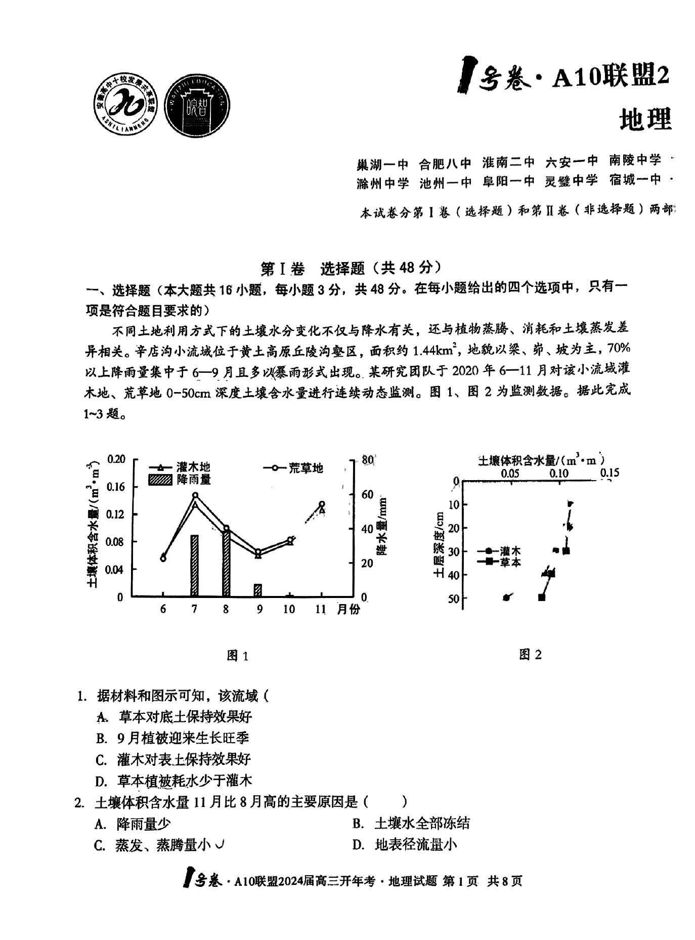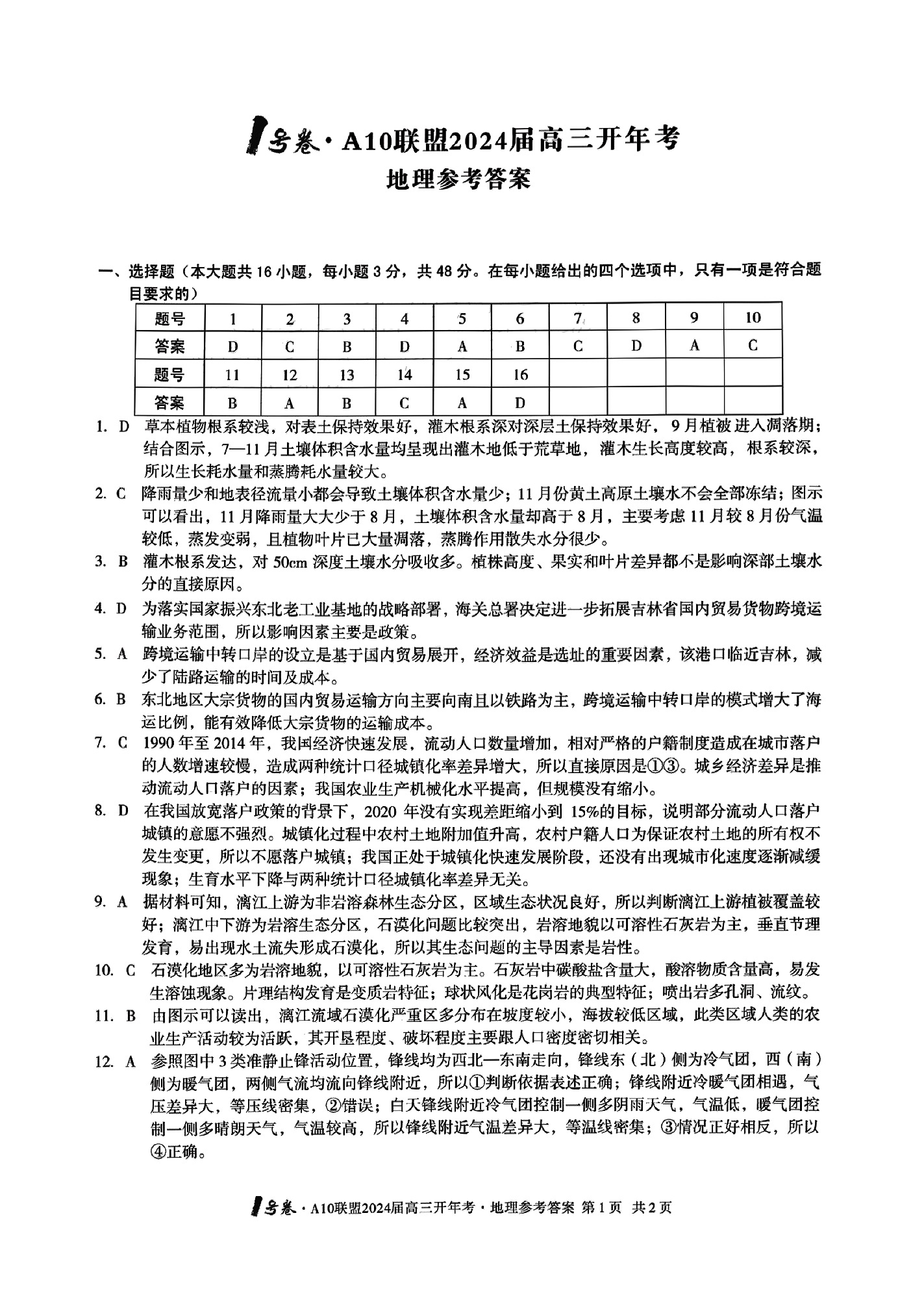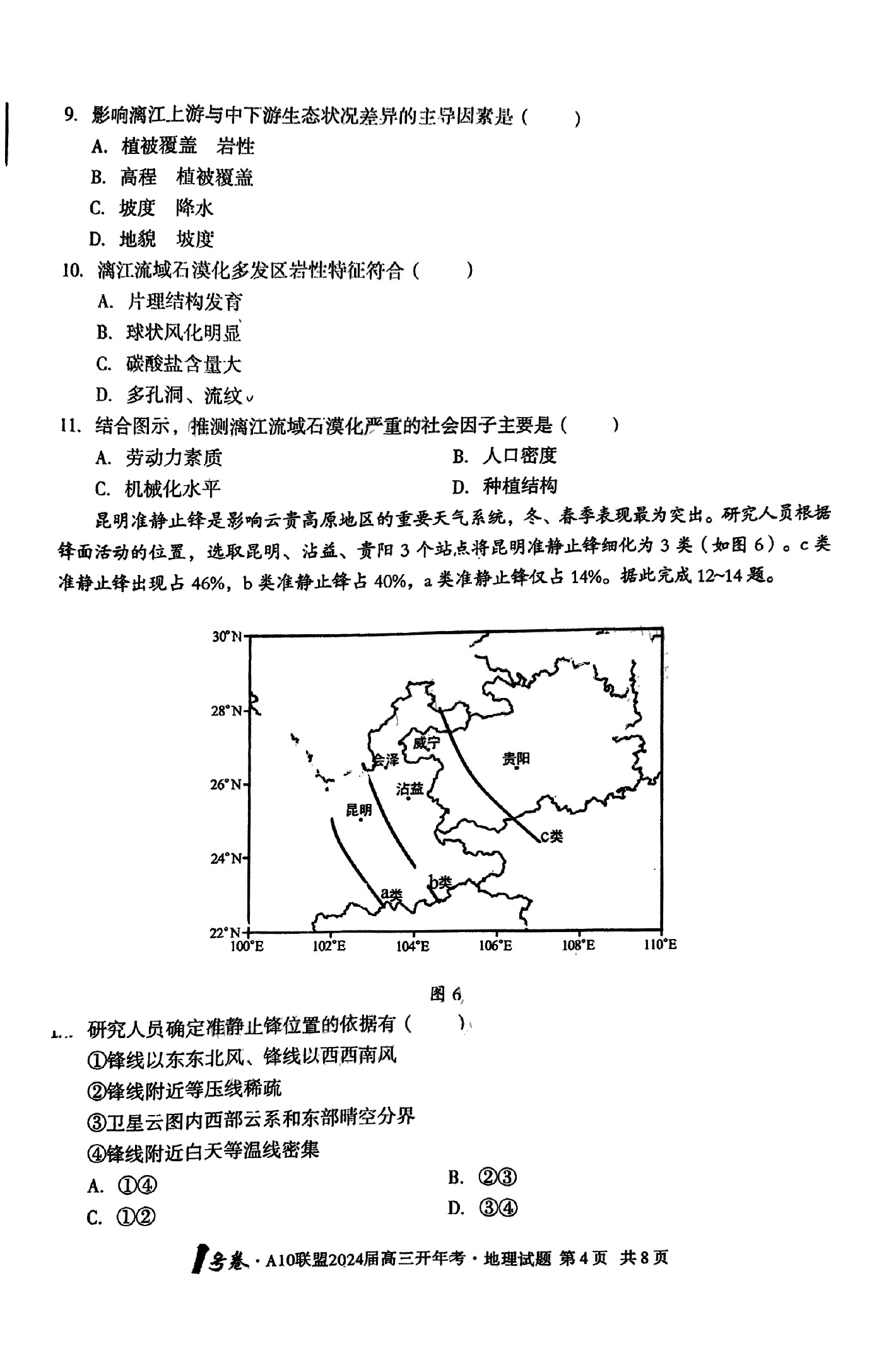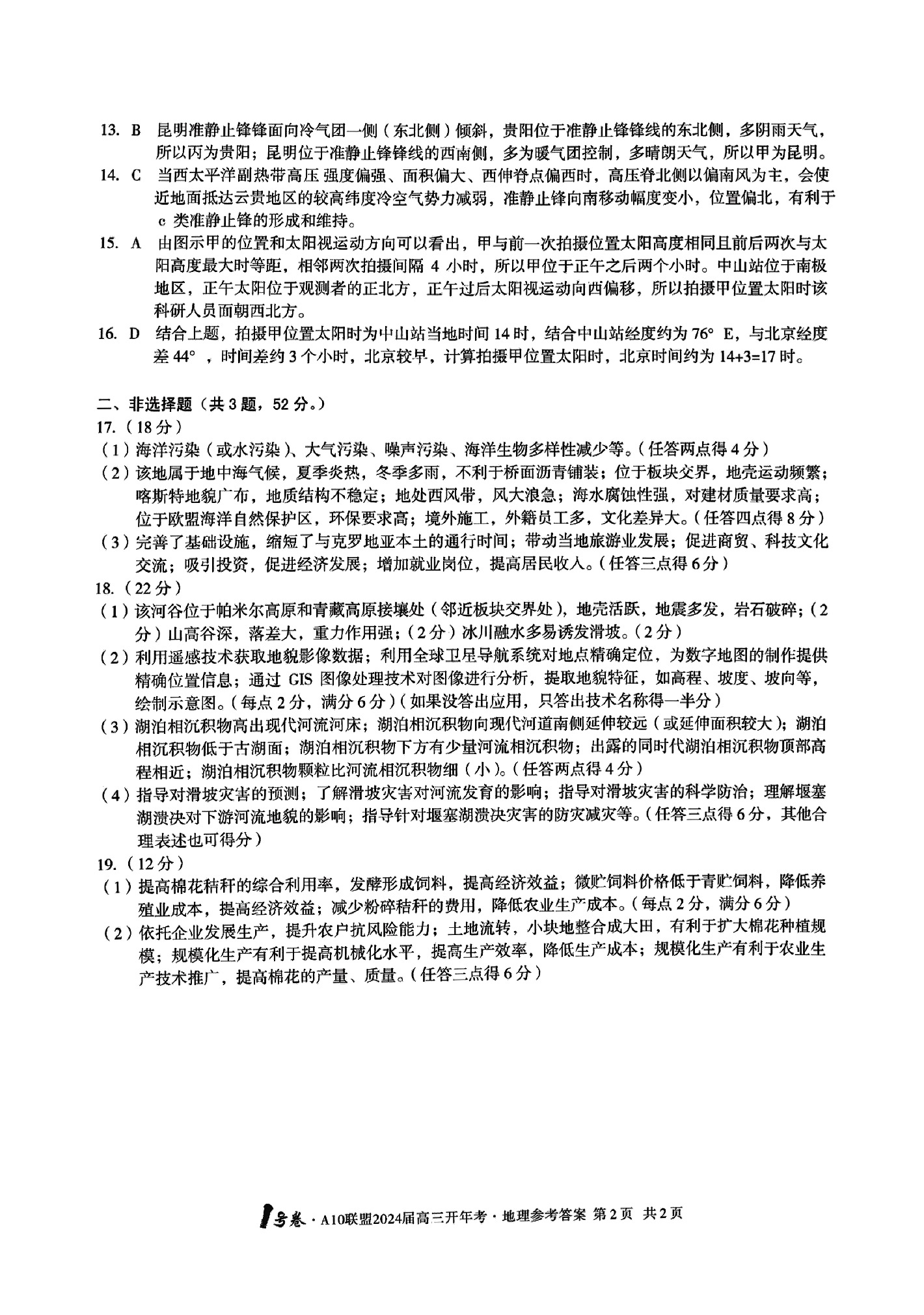 9.2024安徽a10联盟高三开年考地理试卷及答案