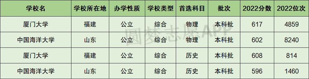 注:不同排名的评价标准不同,不能完全代表中国海洋大学和厦门大学的实力和水平,只是评价厦门大学和中国海洋大学一个角度。