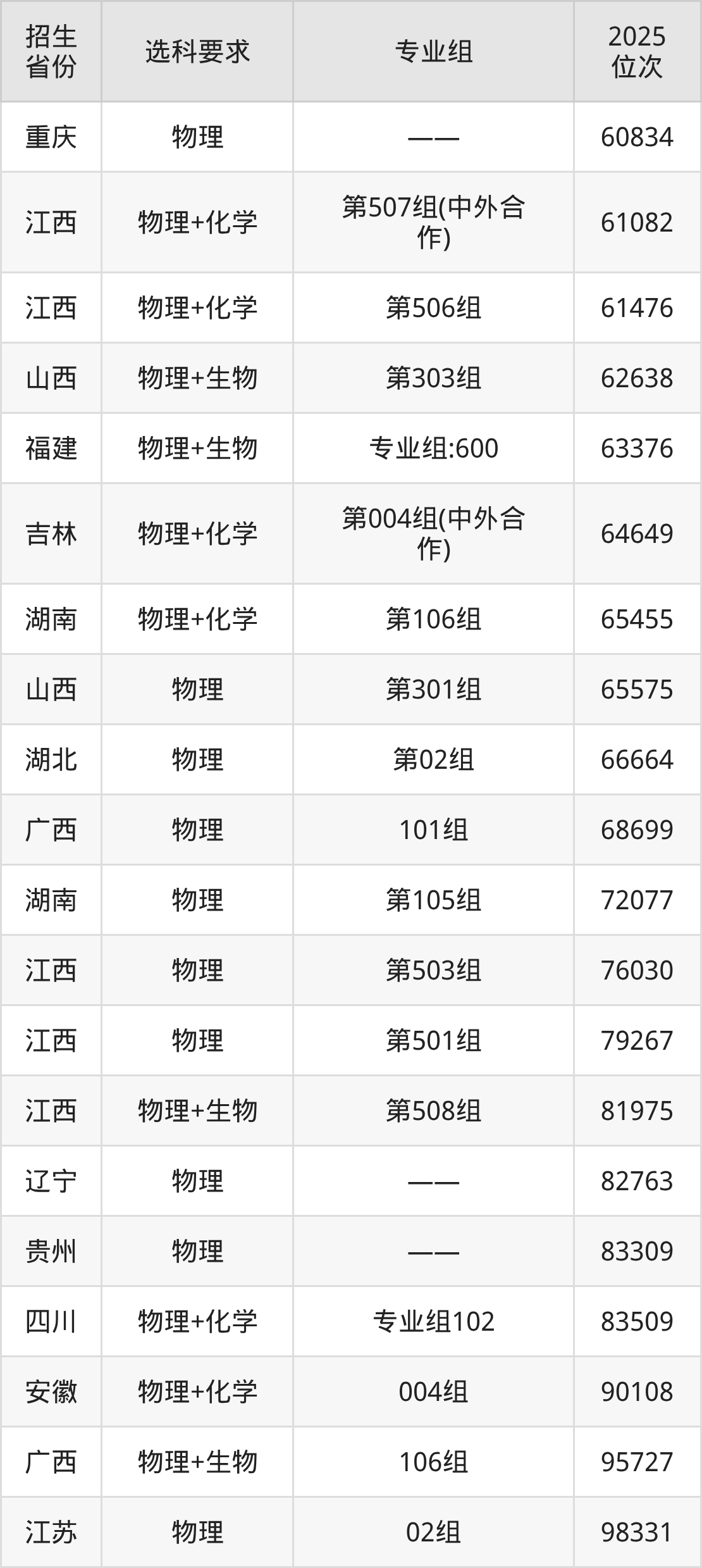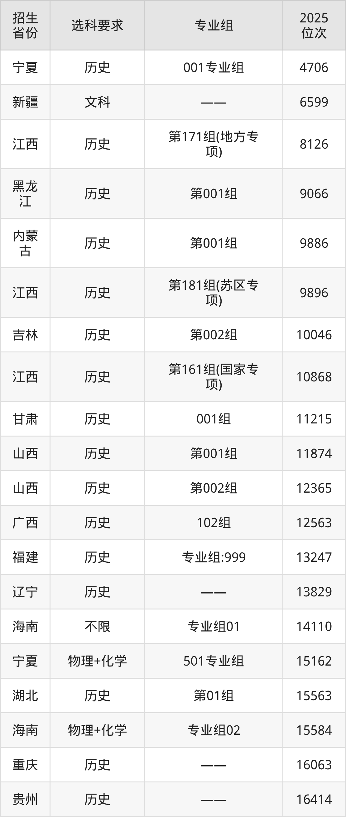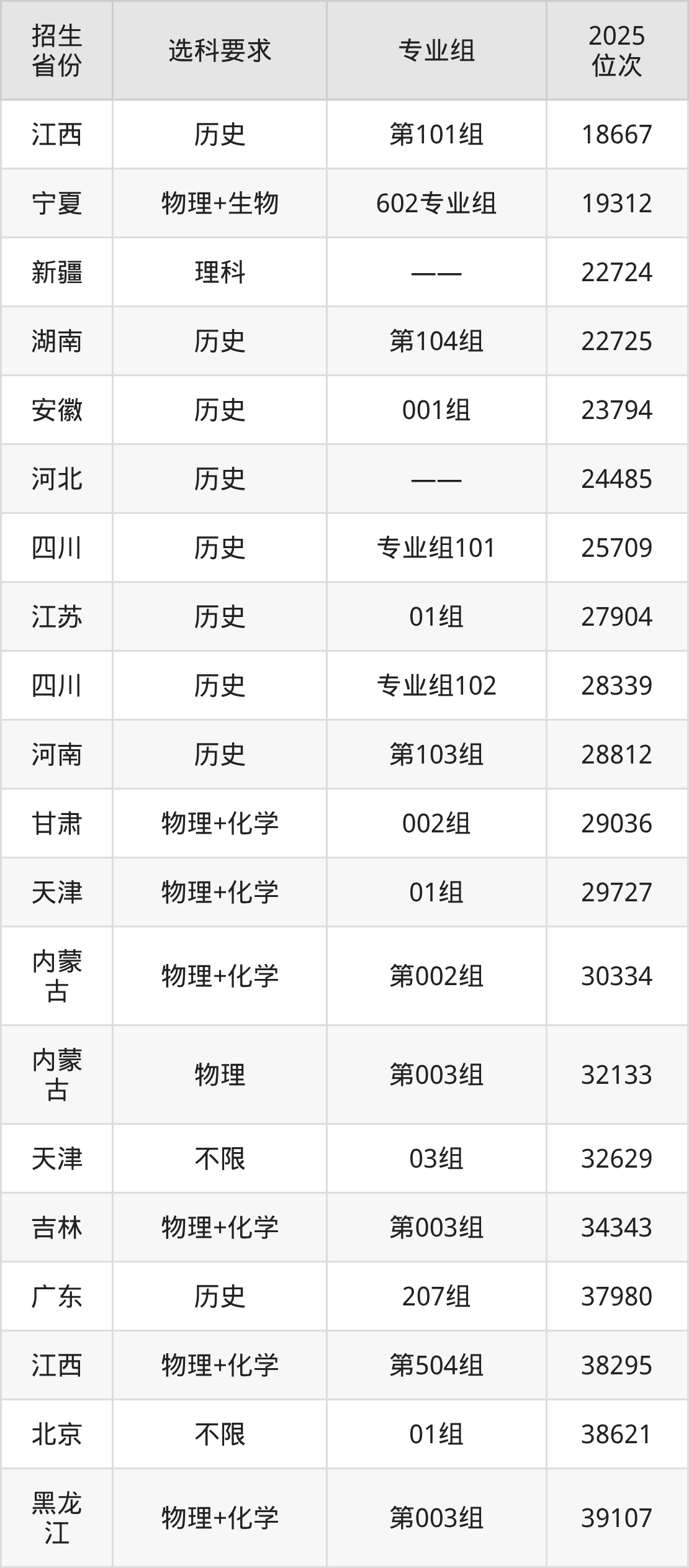 江西水利电力大学2025年在全国各省的位次差异较大,最高位次是4706位(宁夏历史类)、最低位次是274299位(山东)。各省具体位次请看下图: