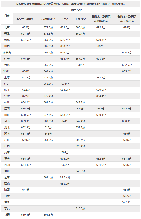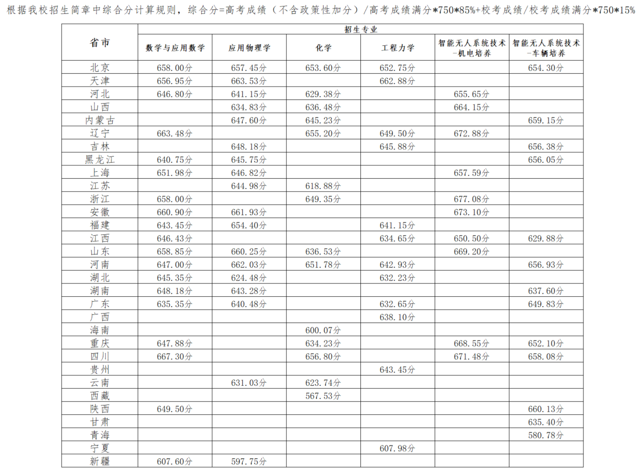 智能无人系统技术(机电培养):最低分为650.5分,对应地区为江西省