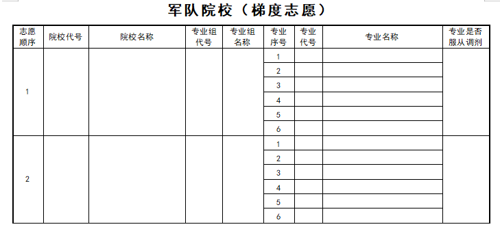 ③军队院校(实行梯度志愿,设2个院校专业组志愿);