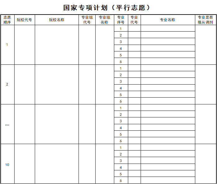 ⑥国家专项计划(实行平行志愿,设10个院校专业组志愿);