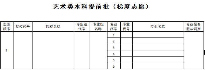 (1)艺术类本科提前批(实行梯度志愿,设1个院校专业组志愿):经批准的艺术类本科校考专业和不分省招生的专业;