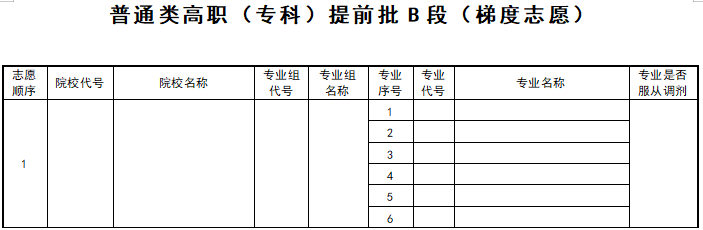 ②普通类高职(专科)提前批B段(实行梯度志愿,设1个院校专业组志愿):需要体检、面试等要求的院校专业;