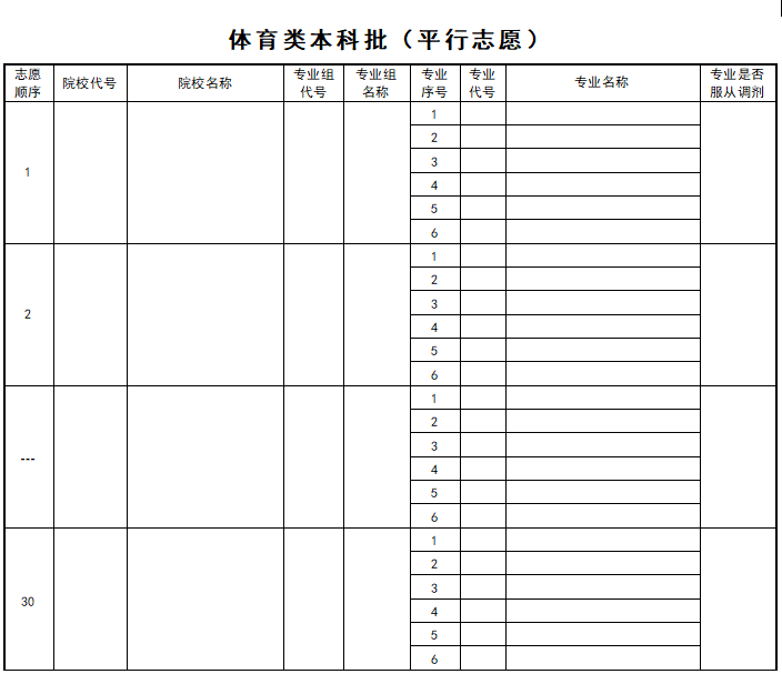 (1)体育类本科批(实行平行志愿,设30个院校专业组志愿)。