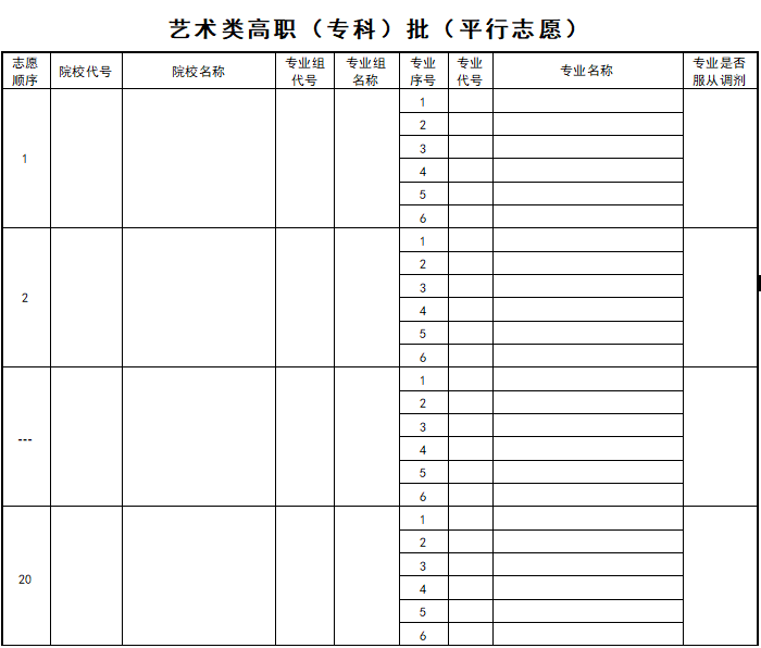 (3)艺术类高职(专科)批(实行平行志愿,设20个院校专业组志愿)。