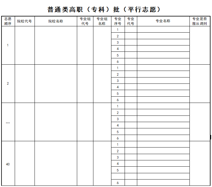(4)普通类高职(专科)批(实行平行志愿,设40个院校专业组志愿):普通高职专科院校招生的专科专业(含普通高职专科院校、振兴龙江计划等)。