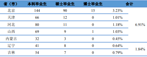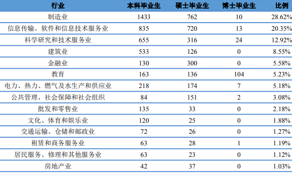 3.高校和科研院所就业为 265 人,占就业人数的 3.44%;