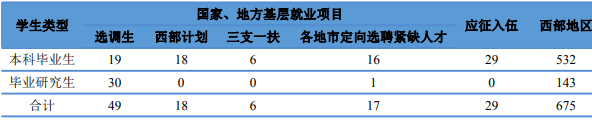 选调生49人,基层、应征入伍、西部地区就业情况: