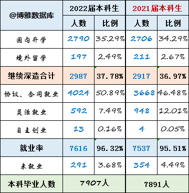 本科毕业生中有 2790 人升学,197 人出国、出境学习,占本科毕业 生毕业生总数的 37.78%。