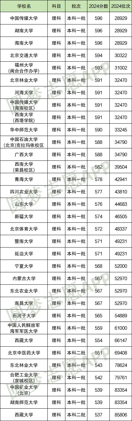 2024年985、211大学在四川理科录取分数最高的是北京大学,分数为698分,排名在63名。分数最低的是西藏大学的537分,位次在85806。