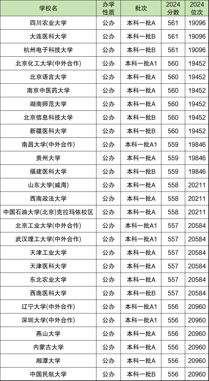 因为招生院校众多,本文只能整理出部分2024年分数位次对应的大学名单,供2025年的考生参考。
