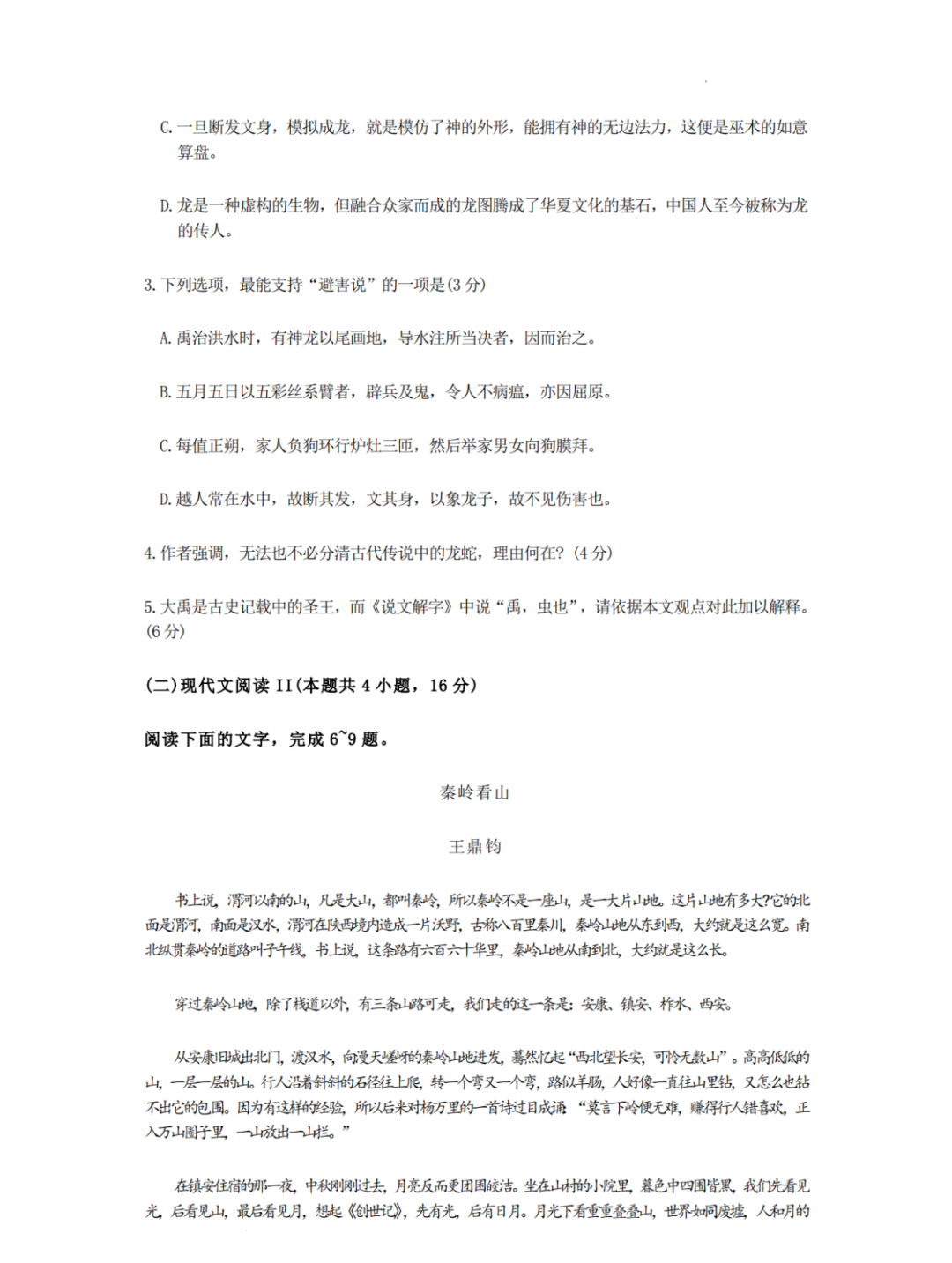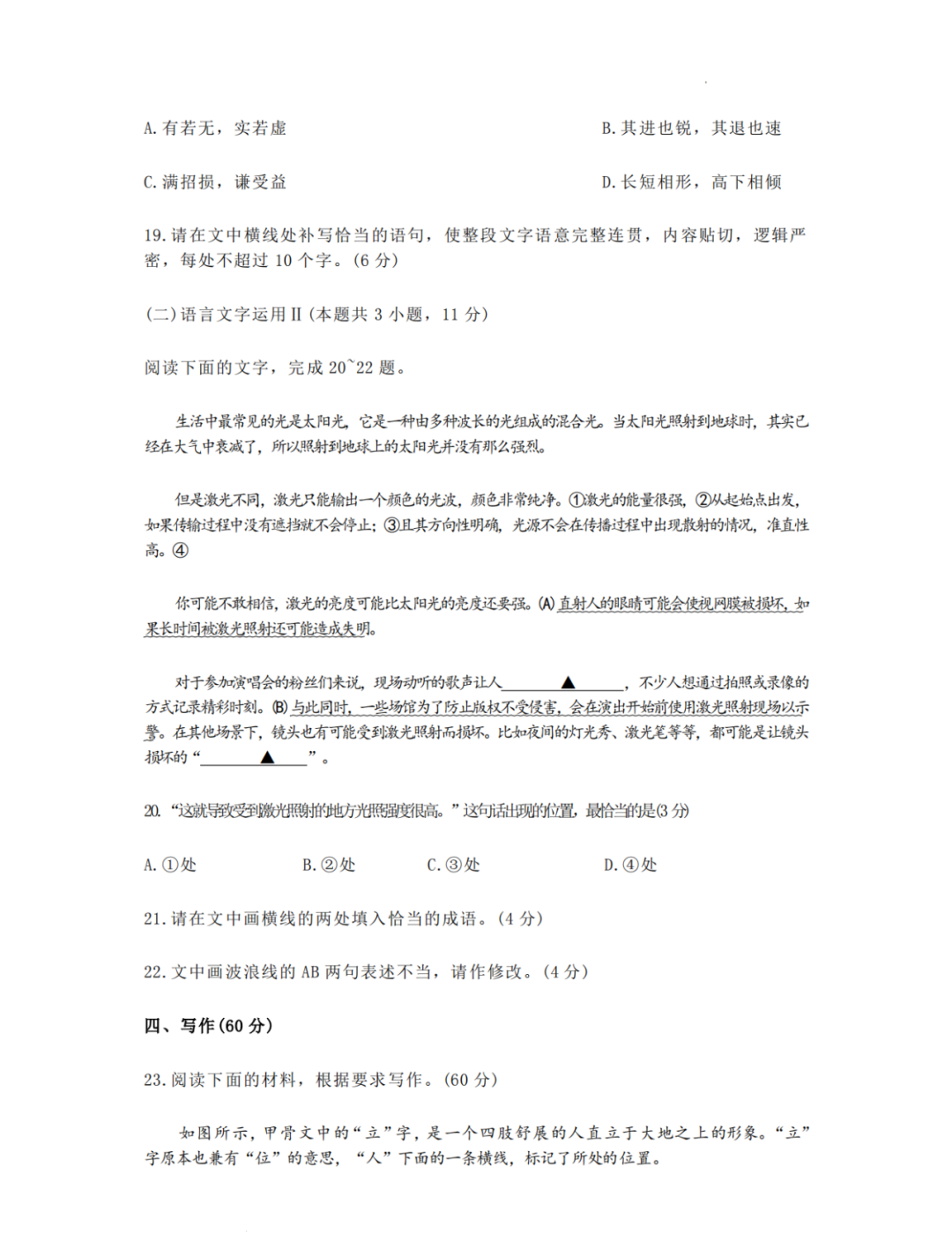 语文试卷如下: