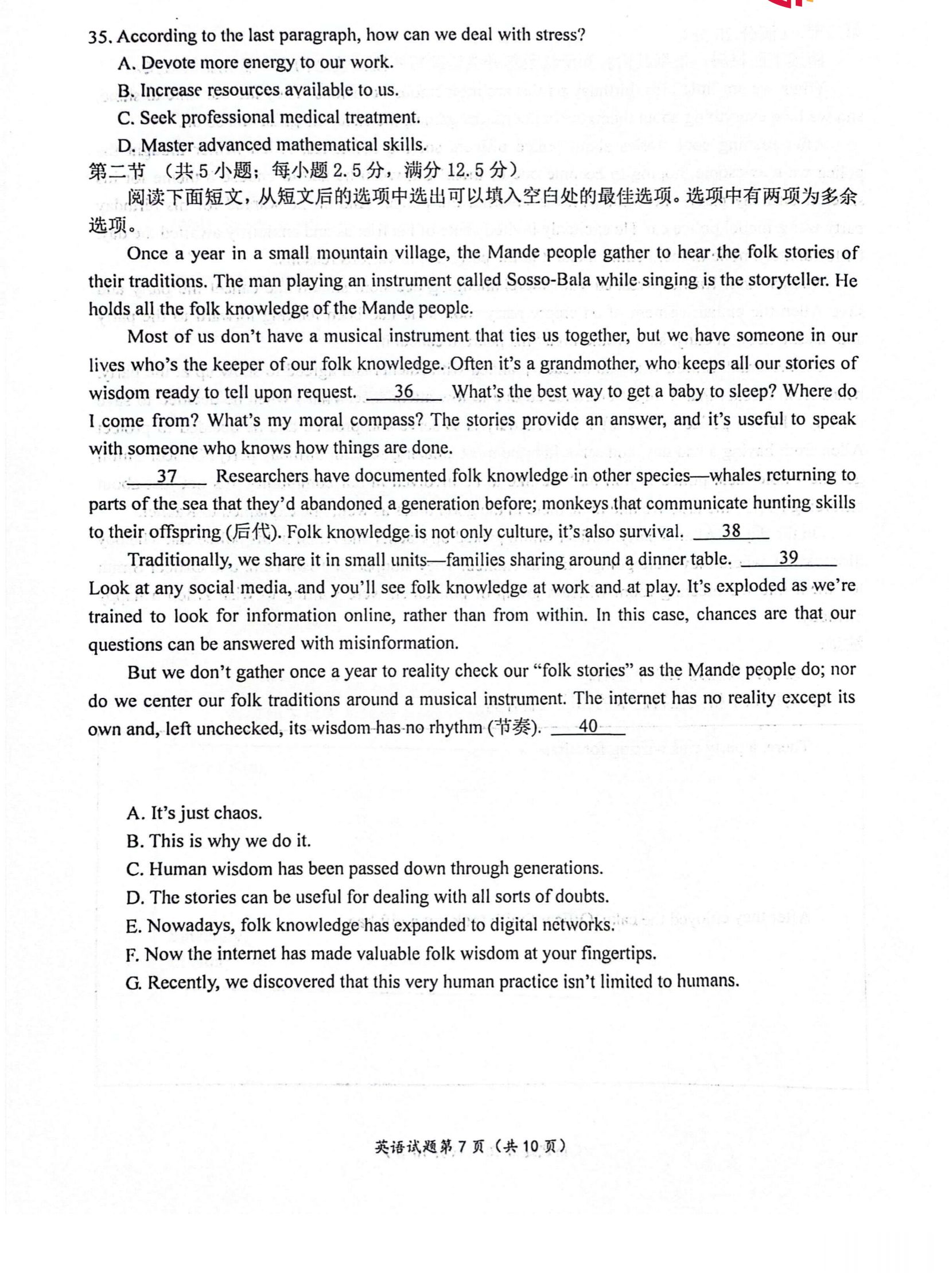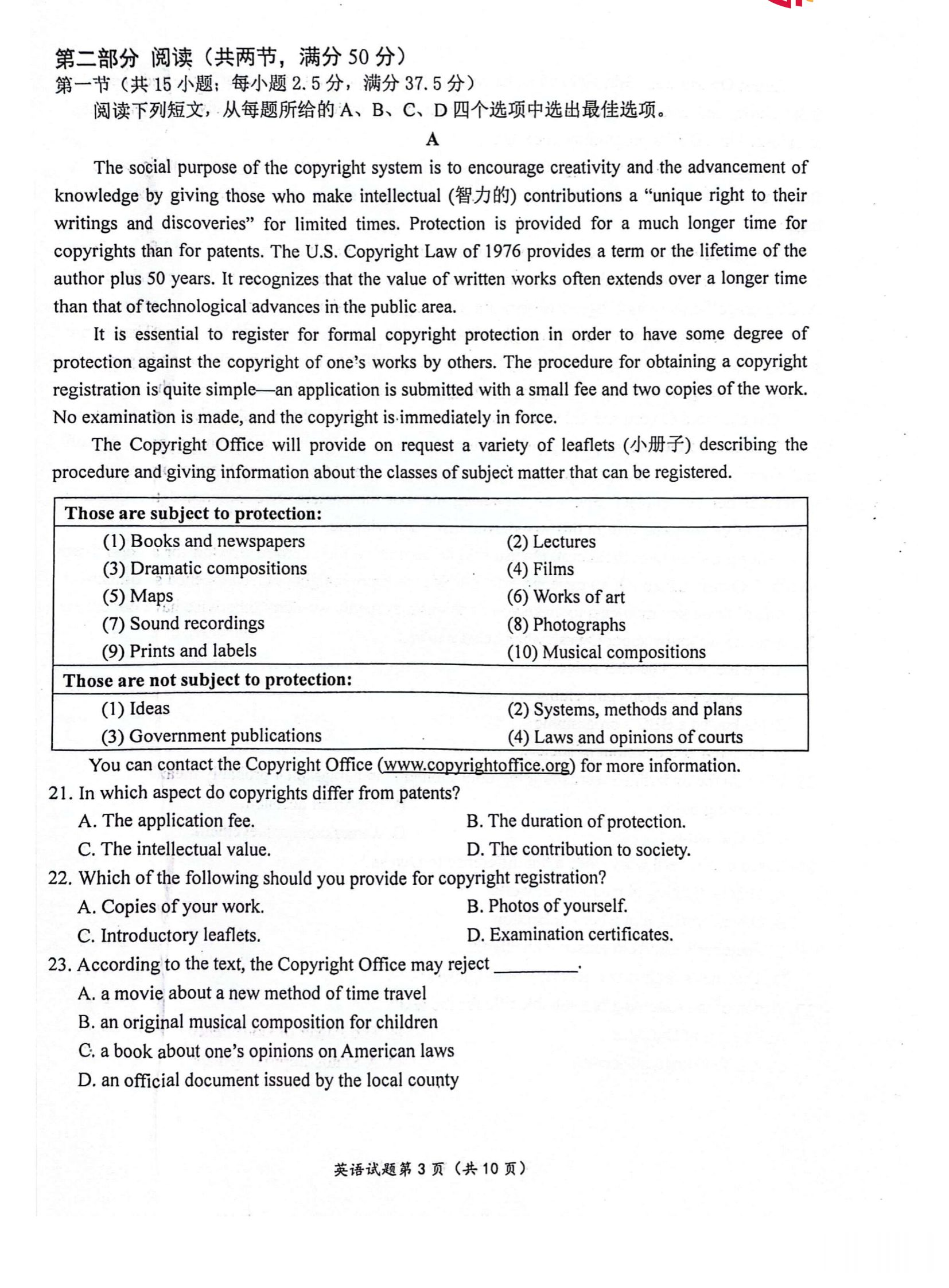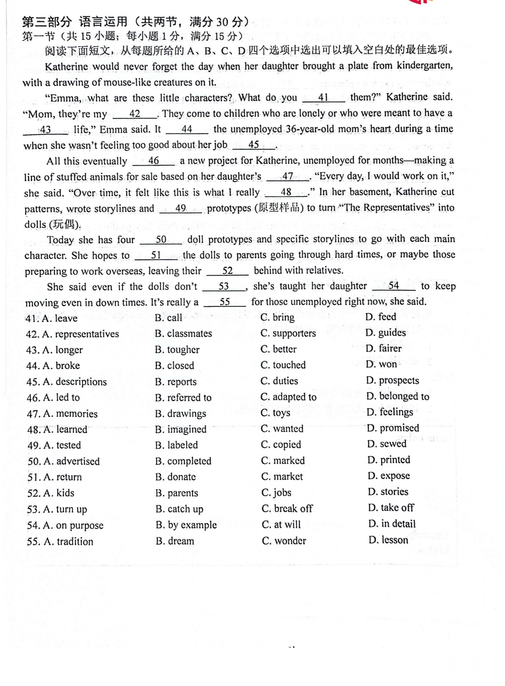 英语试卷如下: