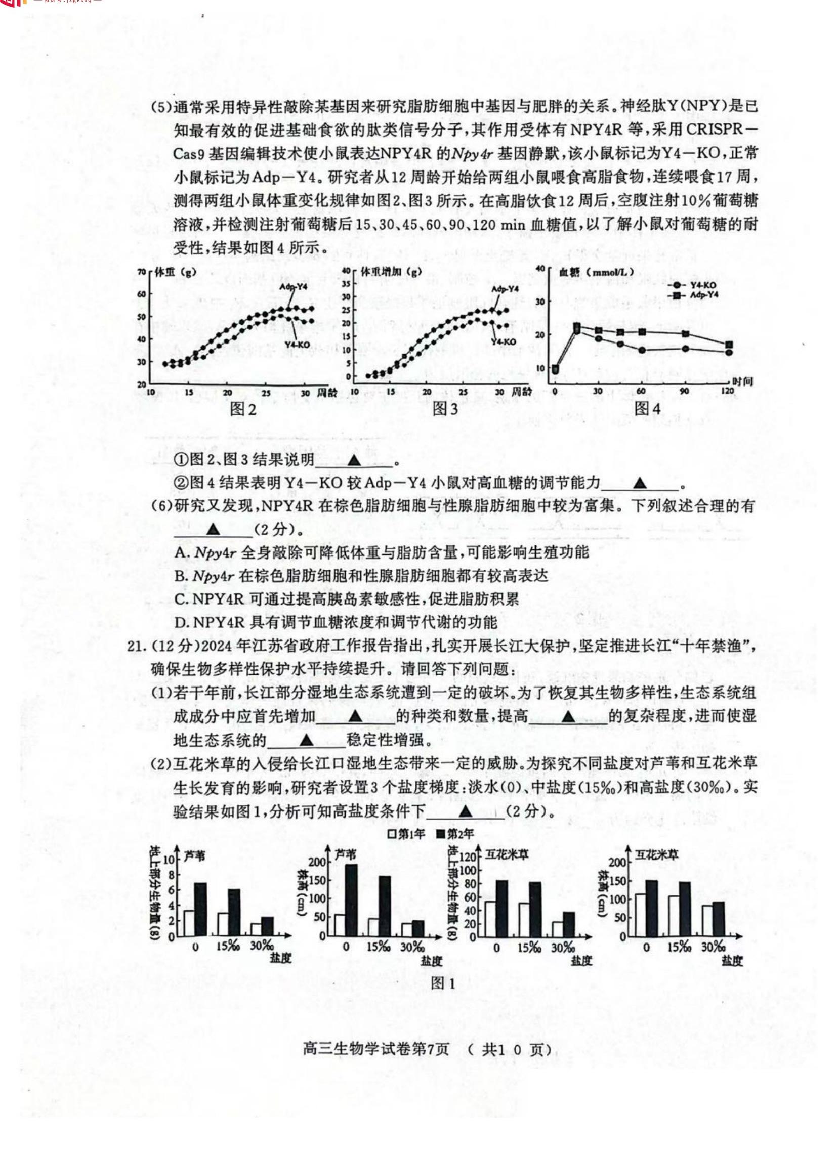 7、南京一模生物试题及答案解析