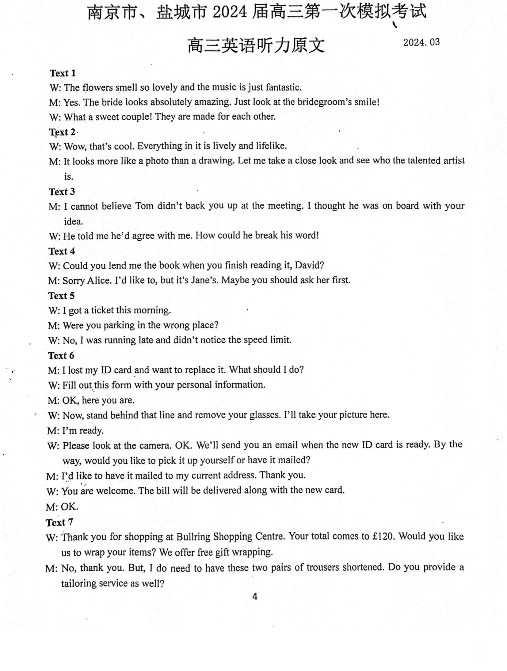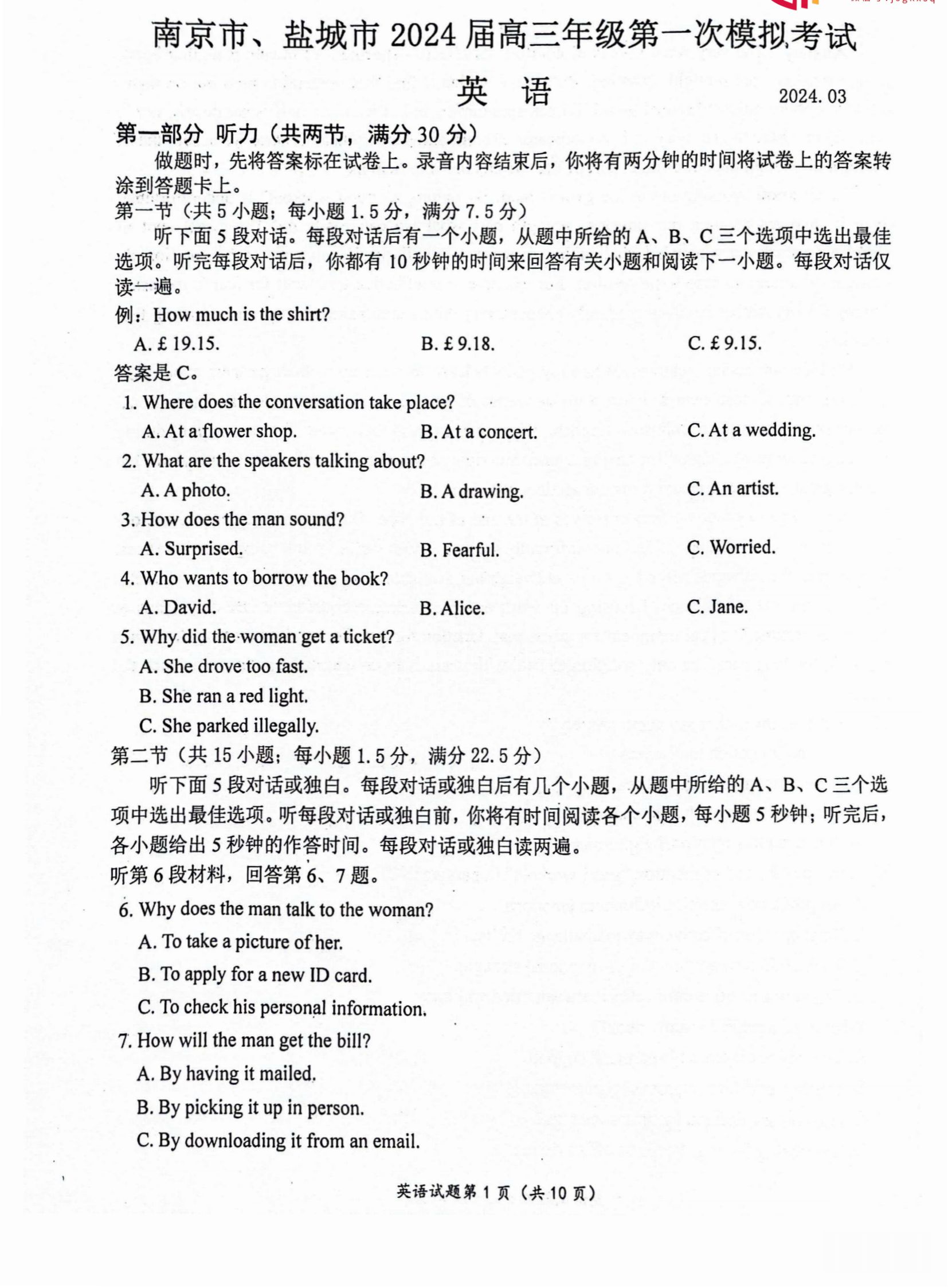 2024年南京一模各科试卷及参考答案解析