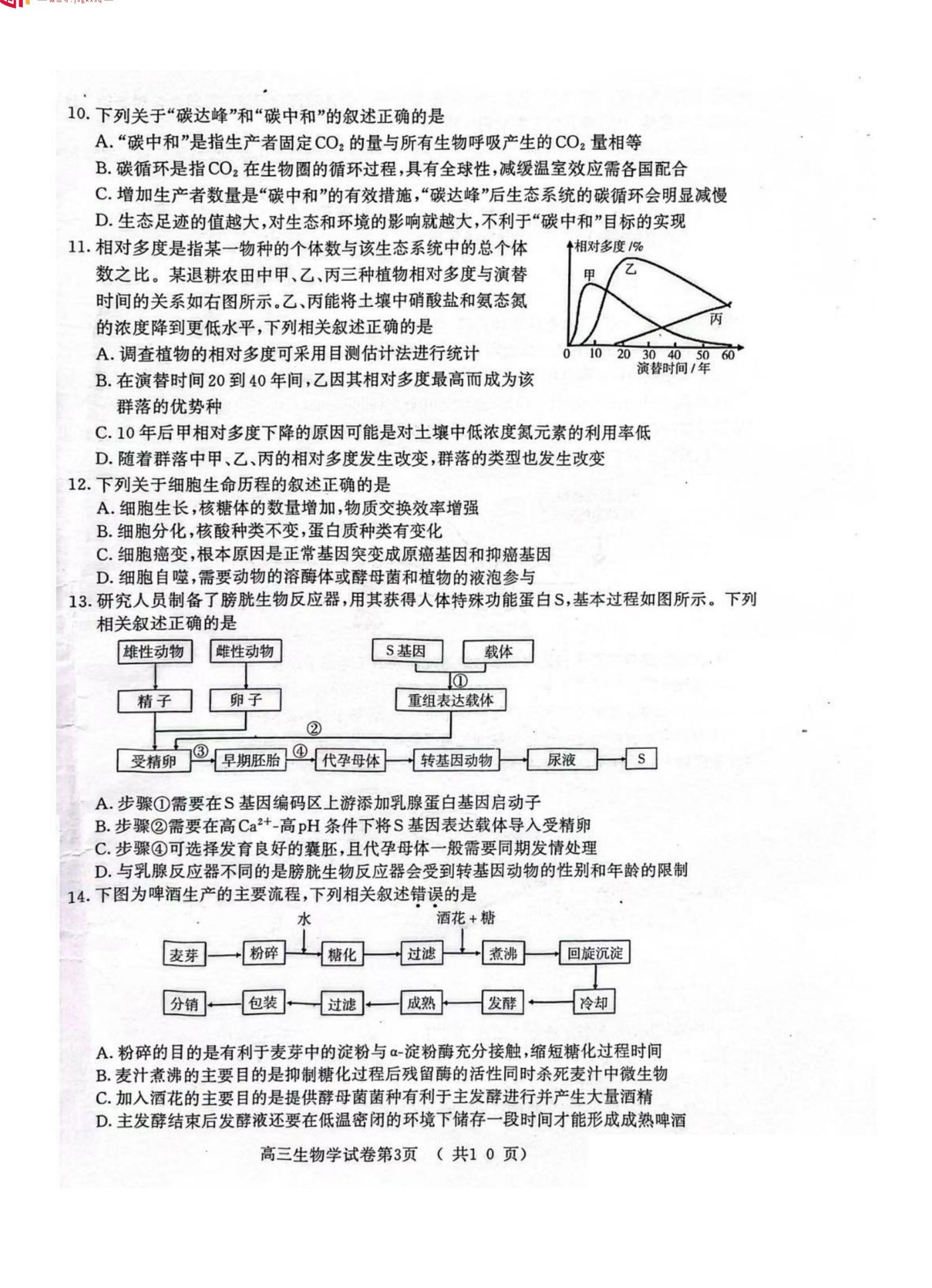 生物试卷如下:
