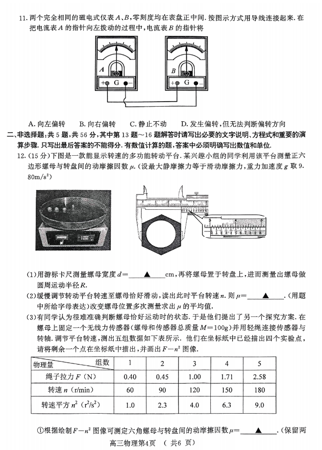 4、南京一模物理试题及答案解析