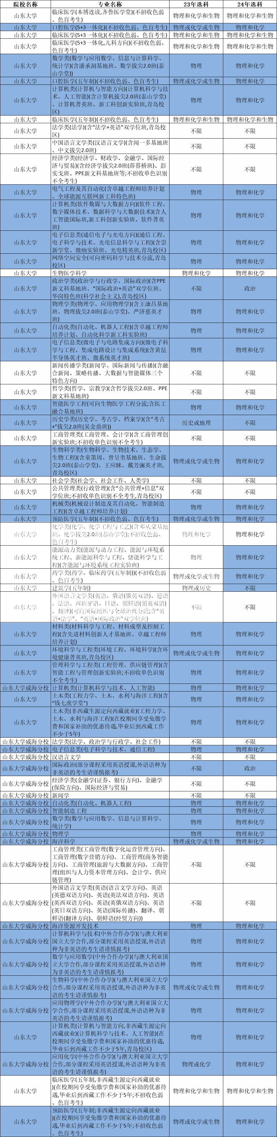 下文为大家整理了山东大学2024年选科对应的专业一览表:
