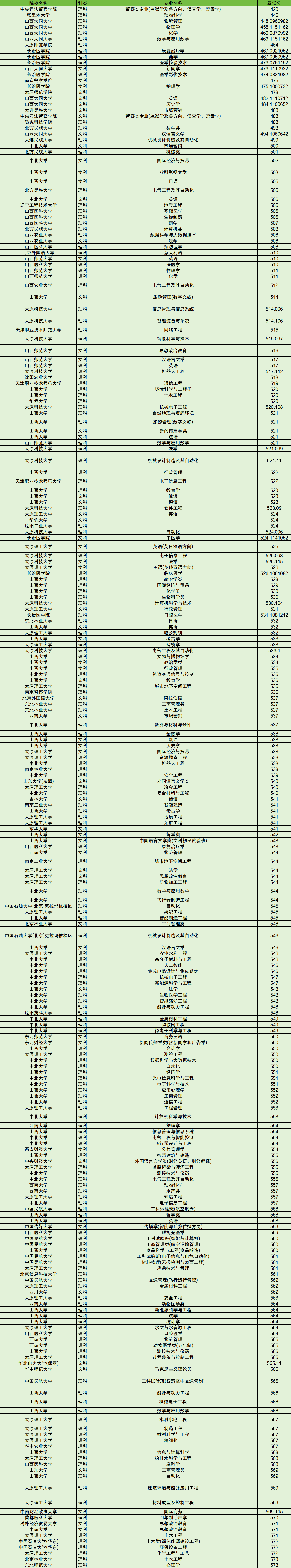 2024年山西国家专项文科录取分数线位于473.1110922分到627分之间,各学校各专业最低分如下。